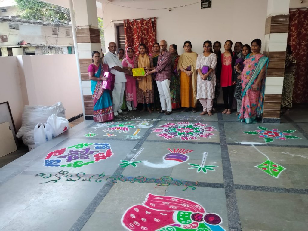 పయనించే సూర్యుడు, డిసెంబర్ 27 రంగారెడ్డి జిల్లా ప్రతినిధి (ఎస్ఎంకుమార్) మన సంస్కృతి, సాంప్రదాయాలకు ప్రతీక లే పండుగలు.సంక్రాంతి పర్వదినాన్ని పురస్కారించుకొని ఫ్రెండ్స్ వెల్ఫేర్ అసోసియేషన్ కొమిరిశెట్టి ఫౌండేషన్ సంయుక్త ఆధ్వర్యంలో శేరిలింగంపల్లి జంట సర్కిళ్ళ పరిధిలో గల 35 కాలనీ లలో మహిళలకు ముగ్గుల పోటీలు నిర్వహించడం జరుగుతుంది.ప్రతి కాల నీలో పోటీలలో గెలుపొందిన వారికి ప్రథమ, ద్వితీయ, తృతీయ 5 ప్రోత్సాహక బహుమతులు అందజేయడం జరుగుతుంది. దీనిలో భాగంగా ఈరోజు హఫీజ్ పేట విలేజిలో మహిళలకు ముగ్గుల పోటీలు నిర్వహించడం జరిగింది.విజే తలకు బహుమతి ప్రదానం చేసిన అనం తరం కొమిరిశెట్టి ఫౌండేషన్ అధ్యక్షులు కొమిరిశెట్టి సాయిబాబా ఫ్రెండ్స్ వెల్ఫే ర్ అసోసియేషన్ కన్వీనర్ తాడిబోయిన రామస్వామి యాదవులు మాట్లాడుతూ పరిశుభ్రత, ఆరోగ్యం, అలంకరణల మేళ వింపే ముగ్గులు”అని అన్నారు. “ఈ పోటీ ల వలన మహిళలలో ఉన్న సృజనాత్మక శక్తి వెలికి రావడానికి అవకాశం ఉంటుం ది.పట్టణీకరణ నేప థ్యంలో అపార్టుమెం ట్ల సంస్కృతి పెరిగిన తరువాత భారతీ య సంస్కృతి, సంప్రదాయాలు నానాటికి కనుమరుగవు తున్నాయి.నేటి యువత రం కూడా మన ప్రాచీన సంస్కృతి, సంప్ర దాయాలు కొనసాగించేందుకై ఈ పోటీలు నిర్వహిస్తు న్నాము “అని అన్నారు. “ఈ ముగ్గుల వలన పరిసరాలు పరిశుభ్రతగా ఉంటాయి. గోమయంతో కళ్ళాపి జల్లి బియ్యపు పిండితో ముగ్గులు వేయడం వలన బియ్యపు పిండి తినడానికి చీమ లు చేరతాయి. ఆ విధంగా చీమలు క్రిమి కీటకాదులు ఇంటిలోనికి రాకుండా అడ్డు కుంటాయి. ఈ ముగ్గులు వేసే ప్రక్రియలో మహిళలు అనేక శరీరక భంగిమలలో పనిచేయ వలసి ఉంటుంది. ఈ వ్యా యామ ప్రక్రియ వలన మహిళలలో అనేక గర్భకోశ వ్యాధులు రాకుండా ఉండేందుకు అవకాశం ఉందని వైద్యులు తెలిపారు. కావున ప్రతి మహిళ కూడా ప్రత్యేకించి ఈ ధనుర్మాసం మొత్తం నెల రోజులు అత్యంత ఉత్సాహంగా వేకువ ఝామున లేచి ముగ్గులు వేయడం ప్రారం భిస్తారన్నారు. ఈ పోటీలలో విజయ లక్ష్మి రమ్య విజేతలను ఎంపిక చేశారు.ఈ పోటీలలో 25 మంది మహి ళ లు పాల్గొన్నారు.ఈ కార్యక్రమంలో స్థానిక మహిళా నాయకురాలు ఆషా రాధ ఫ్రెండ్స్ వెల్ఫేర్ అసోసియేషన్ సభ్యుడు అమ్మయ్య చౌదరి తది తరులు పాల్గొ న్నారు.