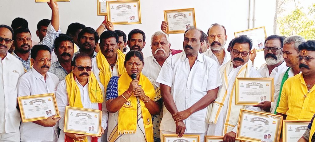 పయనించే సూర్యుడు జనవరి 01 కర్నూలు జిల్లా ఇంచార్జ్ శ్రీకాంత్. ఆదోని టీడీపీ కార్యాలయంలో టిడిపి పార్టీకార్యకర్తలకు ఘనంగా ప్రశంసా పత్రాల పంపిణీ కార్యక్రమం ఆదోని టిడిపి ఇన్చార్జ్ మీనాక్షి నాయుడు ఆదేశాల మేరకు. సుపరిపాలన తొలి అడుగు కార్యక్రమంలో విశేష సేవలు అందించిన కార్యకర్తలను గుర్తిస్తూ ఈ అవార్డులు అందజేశారు. ఈ కార్యక్రమంలో టీడీపీ జిల్లా అధ్యక్షురాలు గుడిసె కృష్ణమ్మ,టిడిపి పార్టీ రాష్ట్ర నాయకులు ఉమాపతి నాయుడు చేతుల మీదుగా 47 మంది కార్యకర్తలకు ప్రశంసా పత్రాలు పంపిణీ చేశారు. పార్టీ బలోపేతానికి అంకితభావంతో పనిచేసిన కార్యకర్తలను ప్రోత్సహించడమే ఈ కార్యక్రమం లక్ష్యమని నేతలు తెలిపారు. ఈ కార్యక్రమంలో పాల్గొన్న తెలుగుదేశం పార్టీ నాయకులు, కార్యకర్తలు పాల్గొనడం జరిగింది.