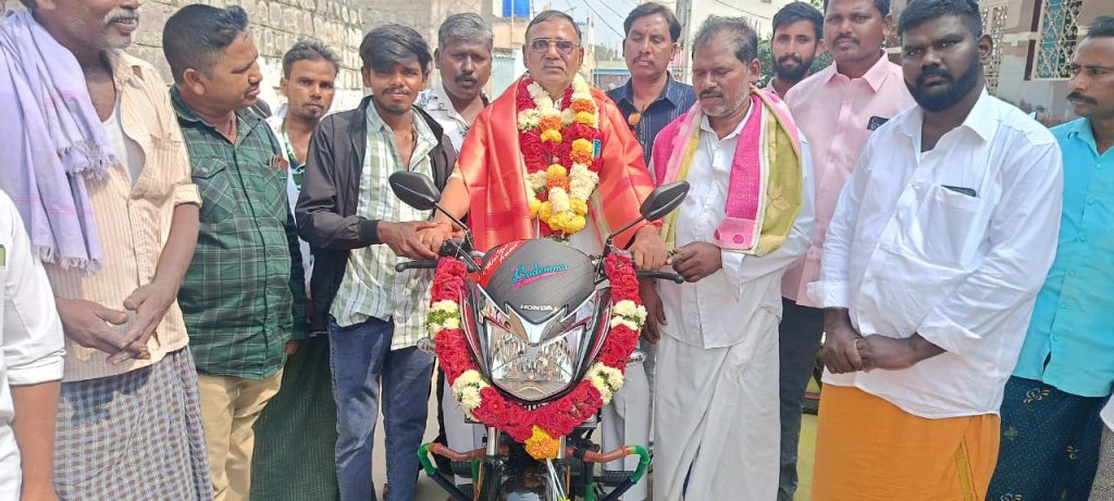 పయనించే సూర్యుడు జనవరి 02 ఆదోని నియోజకవర్గం క్రైమ్ రిపోర్టర్ కృష్ణ కర్నూలు జిల్లా మంత్రాలయం నియోజకవర్గం మంత్రాలయం టౌన్ లోమంత్రాలయం జనసేన పార్టీ ఇంచార్జ్,రాష్ట్ర ఐక్య వాల్మీకి బోయ పోరాట కమిటీ రాష్ట్ర అధ్యక్షులు వాల్మీకి బి లక్ష్మన్న ఇంటి ఆవరణలో కొత్త సంవత్సర వేడుకలు ఘనంగా జరుపుకున్నారు. ముందుగా కేక్ కట్ చేసి ఒకరికి ఒకరు తినిపించుకుంటూ శుభాకాంక్షలు తెలుపుకున్నారు. తధానంతరం కార్యకర్తలను ఉద్దేశించి మాట్లాడుతూ జనసేన పార్టీ మండల అధ్యక్షులకు, జనసేనపార్టీ నాయకులకు, కార్యకర్తలకు సంవత్సర శుభాకాంక్షలు తెలుపుతూ మంత్రాలయం నియోజకవర్గం ప్రజలకు సందేశం ఇస్తూ అందరూ ఆయురారోగ్యాలతో, సంతోషాలతో, అష్టైశ్వర్యాలతో సుఖ జీవనం సాగించాలని ఏడుకొండల వెంకటేశ్వర స్వామిని, రాఘవేంద్ర స్వామిని ప్రార్థిస్తున్నానని తెలిపారు. ఆంధ్రప్రదేశ్ రాష్ట్రం నారా చంద్రబాబు నాయుడు ముఖ్యమంత్రి, కె పవన్ కళ్యాణ్ ఉప ముఖ్యమంత్రి సారథ్యంలో స్వర్ణాంధ్ర ప్రదేశ్ దిశగా అభివృద్ధి పథంలో దూసుకు వెళుతుందని వాల్మీకి లక్ష్మన్న తెలిపారు. ఈ 2026 కొత్త సంవత్సరంలో రాష్ట్రం అభివృద్ధి పథంలో నడుస్తుందని సంక్షేమ పథకాలు సూపర్ గా అమలు చేస్తున్నారని వాల్మీకి బి లక్ష్మన్న ధీమా వ్యక్తం చేశారు. తదనంతరం జాలాడి జైపాల్ కొత్త సైకిల్ మోటార్ను వాల్మీకి బి లక్ష్మన్న చేతుల మీదుగా పని చేయించారు. ఈ కార్యక్రమంలో పెద్ద పెడబూర్ జనసేన పార్టీ మండల అధ్యక్షులు జి బజారి ( అబ్రహం ), కోసిగి జనసేన పార్టీ మండల అధ్యక్షులు సి వీరారెడ్డి, కౌతాళం మండల నాయకులు చిన్న, ఎర్రి స్వామి, వై నాగేష్, ఈరన్న, ఏసోబు మరియు కోసిగి మండలం నుంచి కరీం స్వామి, నరసింహులు, పెద్ద కడబూర్ మండలం నుంచి పెద్ద కడూరు సింగల్ విండో డైరెక్టర్ ఎస్ అనిమేష్, ఉపాధ్యక్షుడు ఆలీ భాష, ప్రభుదాస్, లింగన్న, జైపాల్, బంగారయ్య మరియు మంత్రాలయం మండలం నుంచి మంత్రాలయం మండల జనసేన పార్టీ అధ్యక్షులు బివి రవిచంద్ర, మిడిల్దిన్ని రాగు, గిడ్డయ్య, పవన్, దుల్లయ్య, వెంకటేష్, అడవి రాగు మరియు కార్యకర్తలు పెద్ద సంఖ్యలో పాల్గొన్నారు.