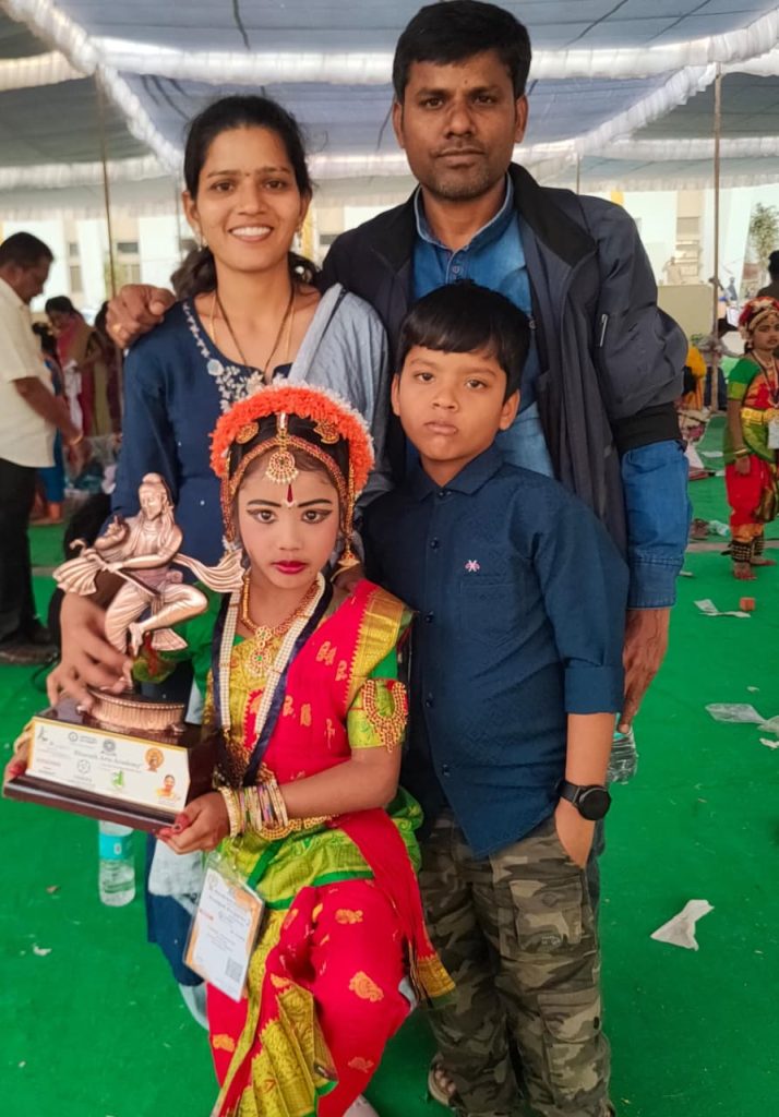 పయనించే సూర్యుడు న్యూస్ : పెద్దపల్లి- జనవరి-04:- హైదరాబాదులోని గచ్చిబౌలి స్టేడియంలో భారత్ ఆర్ట్ అకాడమీ నిర్వహించిన కూచిపూడి నృత్య ప్రదర్శనలో గోదావరిఖని సెయింట్ క్లెయిర్ హై స్కూల్ లో రెండవ తరగతి చదువుతున్న చిన్నారి పెద్దల తన్స్వీక తన ప్రదర్శనతో గిన్నిస్ వరల్డ్ రికార్డ్ అవార్డును దక్కించుకున్నారు. చిన్న వయసులోనే కూచిపూడి నృత్య ప్రదర్శనతో గిన్నిస్ బుక్ అవార్డు సొంతం చేసుకోవడంతో స్కూల్ స్కరస్పాండ్ డేవిడ్, ఎనిమిదవ కాలనీకి చెందిన తమ తల్లిదండ్రులు ఆంజనేయస్వామి, లత, సంతోషం వ్యక్తం చేశారు. ఈ కాలంలో విదేశీ సంస్కృతి ఉన్న విలువలు మన దేశ సంస్కృతి పై లేదు అని చెప్పుకునే స్థాయిలో నేడు మనం ఉన్నాం అంతరించి పోతున్న మన సంప్రదాయాలు , కళాలు నుండి ఒక్కటైన కూచిపూడి నృత్యం నేర్చుకోవడం తో పాటు చిన్న వయసులోనే స్టేజ్ పర్ఫామెన్స్ ఇవ్వడం చాలా గొప్ప విషయం.వారికి ఉన్న పట్టుదల, నిబద్దతకి నిదర్శనం వారి తల్లిదండ్రులు ప్రోత్సాహం అందించడం అనేది ఎంతో ముఖ్యం. చిన్నారులను వారి అభిరుచులకు అనుగుణంగా తల్లి తండ్రులు ప్రోత్సహించడం శుభ పరిణామం. ఇంకా చిన్నారి తన్స్వీక భవిష్యత్తులో ఇలాంటి అవార్డులు ఎన్నో గెలుచుకోవాలని ఆశిద్దాం.