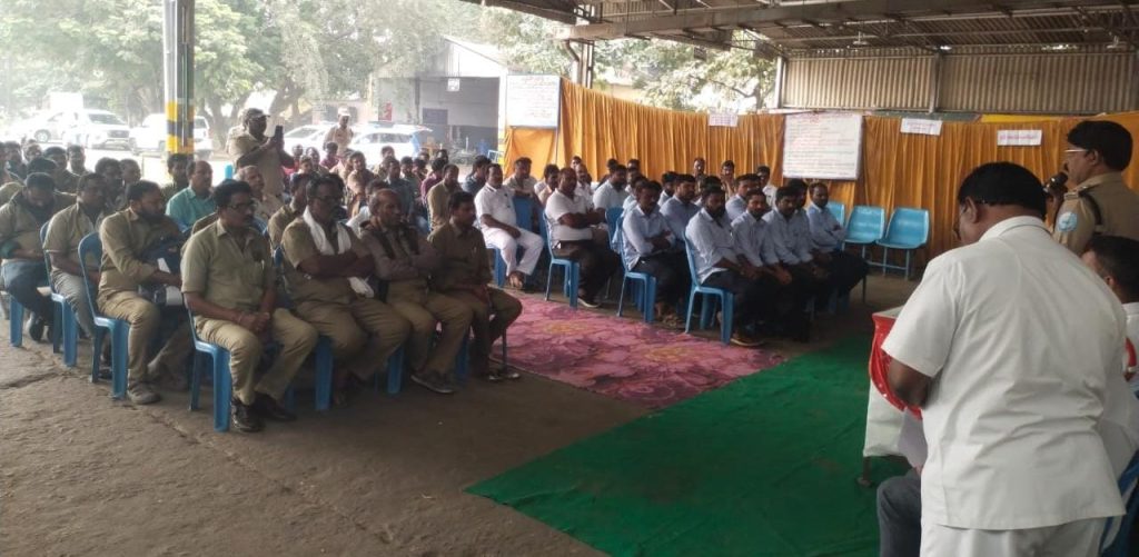 పయనించే సూర్యుడు న్యూస్ 04-1-26, నాగరాజు రుద్రారపు సూర్యాపేట టౌన్ రిపోర్టర్ ప్రయాణికులను సురక్షితంగా గమ్యం చేర్చడం ఆర్టీసీ డ్రైవర్ల విధి.. సూర్యాపేట డివిజన్ డిఎస్పీ ప్రసన్న కుమార్ జాతీయ రోడ్డు భద్రత మాసోత్సవాలు కార్యక్రమం పురస్కరించుకుని శనివారం రోజున సూర్యాపేట పట్టణంలో గల ఆర్టీసీ బస్టాండ్ డిపో నందు బస్సు డ్రైవర్లకు రోడ్డు భద్రతా నియమాలు, ప్రయాణ సమయంలో తీసుకోవాల్సిన జాగ్రత్తలపై సూర్యాపేట డిఎస్పి ప్రసన్నకుమార్, సూర్యాపేట రోడ్ ట్రాన్స్పోర్ట్ అధికారులు సంయుక్తంగా అవగాహన కార్యక్రమాన్ని నిర్వహించారు. ప్రయాణికులను సురక్షితంగా గమ్యం చేర్చాల్సిన బాధ్యత ఆర్టీసీ డ్రైవర్ల పై ఉన్నదని డిఎస్పి తెలిపారు. నిబంధన ప్రకారం వాహనాలను నడపాలని అతివేగంగా వెళ్లకుండా నిదానంగా వెళ్లాలని సూచించారు, ఆర్టీసీ సిబ్బందితో వాహనాలను జాగ్రత్తగా నడుపుతామని ప్రతిజ్ఞ చేయించారు. రోడ్డు ప్రమాదాల నివారించడం కోసం ప్రతి ఒక్కరూ బాధ్యతగా వ్యవహరించాలని వాహనాలు నిదానంగా నడపాలని, పిల్లలకు వాహనాలు ఇవ్వకూడదని కోరారు, రహదారులపై ఎక్కడపడితే అక్కడ వాహనాలు నిలపడం వల్ల ప్రమాదాలు సంభవిస్తున్నాయని అన్నారు. రోడ్డు ప్రమాదంలో ఏ ఒక్క వ్యక్తి మరణించకూడదని ఇందుకోసం ప్రతి ఒక్కరు బాధ్యతగా వాహనాలు నడపాలని కోరారు. కార్యక్రమం నందు మోటార్ వెహికల్ ఇన్స్పెక్టర్ జయప్రకాష్ రెడ్డి, ఆర్టీసీ రీజినల్ మేనేజర్ జాన్ రెడ్డి, సూర్యాపేట పట్టణ ఇన్స్పెక్టర్ వెంకటయ్య, ట్రాఫిక్ ఎస్ఐ సాయిరాం ఉన్నారు.