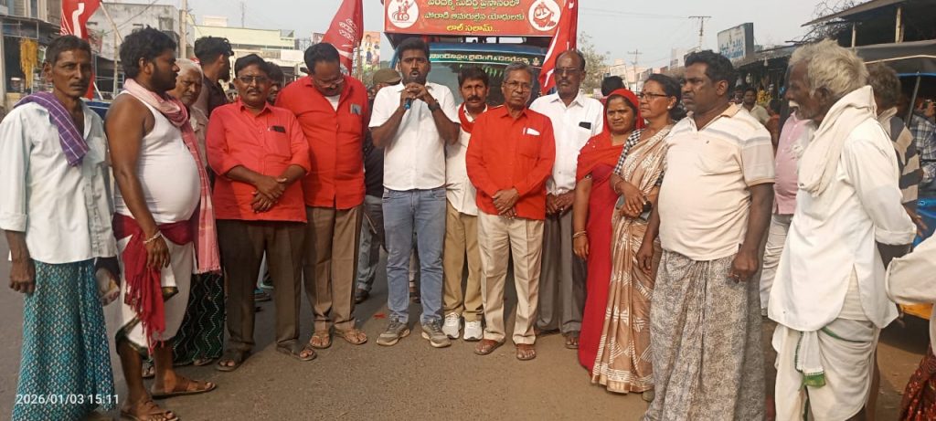 పయనించే సూర్యుడు న్యూస్ : జనవరి 4, తల్లాడ రిపోర్టర్ భారత కమ్యూనిస్టు పార్టీ పుట్టి భారత గడ్డపై నూరేళ్లు పూర్తి చేసుకున్న సందర్భంగా సిపిఐ జిల్లా ప్రచార జాత ఈరోజు చల్లాడ మండలానికి చేరింది తల్లాడ మండలంలో ఉన్నటువంటి కార్యకర్తలు భారీగా స్వాగతం పలికారు యొక్క కార్యక్రమాన్ని ఉద్దేశించి భారత కమ్యూనిస్టు పార్టీ సిపిఐ జిల్లా సహాయ కార్యదర్శి జమ్మల జితేందర్ రెడ్డి గారు మాట్లాడుతూ భారత కమ్యూనిస్టు పార్టీ నూరేళ్ల ఈ చరిత్రలో నువ్వు ఎందుకు అలుపెరుగని పోరాటాలు చేసి అనునిత్యం ప్రజల గుండెల్లో ఉన్నటువంటి భారత కమ్యూనిస్టు పార్టీ దేశంలో అనేక రాష్ట్రాలలో సాయిధ పోరాటాలను నిర్వహించి దేశవ్యాప్తంగా సమరశీల పోరాటాలు నిర్వహించిన చరిత్ర ఉంది ఈ రాష్ట్రమెలినా ఏ ఊరు వెళ్ళిన భారత కమ్యూనిస్టు పార్టీ అడుగుజాడలు కనబడుతూనే ఉంటాయని దానిని చెడపటం ఎవరు తరం కాదని ఆయన అన్నారు ఈరోజు మతోన్మాద శక్తులు కమ్యూనిస్టులపై అనేకమైనటువంటి దాడులు నిర్వహించేటువంటి క్రమంలో ప్రజలు చైతన్యవంతులై ఈ మతోన్మాద ప్రభుత్వానికి బుద్ధి చెప్పే సమయం ఆసన్నమైందని అన్నారు. తెలంగాణ రాష్ట్రంలో ఖమ్మం జిల్లాకు ఒక సుదీర్ఘమైనటువంటి చరిత్ర ఉందని ఈ జెండాని ఖమ్మం జిల్లా ప్రజలు కడుపులో పెట్టుకొని ప్రేమించారని ఖమ్మం జిల్లా అంటే పోరాటాల కిల్లగా పేరు ఉన్నటువంటి ఈ గడ్డపై దేశవ్యాప్త భారత కమ్యూనిస్టు పార్టీ నూరు వసంతాల ముగింపు సభ జరుగుతుందని ఈ సభకు వేలాదిగా గ్రామ గ్రామాన నుంచి వచ్చి ఒక సభను విజయవంతం చేసి బడుగు బలహీన వర్గాలకు ఇంకా ఆశాజ్యోతి గా ఉన్నటువంటి సిపిఐని మరింత ముందుకు నడపాలని ఆయన అన్నారు ఈ కార్యక్రమంలో సిపిఐ జిల్లా కార్యవర్గ సభ్యులు సింగ్ నరసింహారావు, సిహెచ్ సీతామహాలక్ష్మి, దండు ఆదినారాయణ, మద్దోజు శ్రవణ్ కుమార్, నల్లమోతు నరసింహారావు, సిపిఐ మండల కార్యదర్శి రమేష్, నియోజకవర్గ మహిళా నాయకురాలు రంజాన్ బి తదితరులు పాల్గొన్నారు