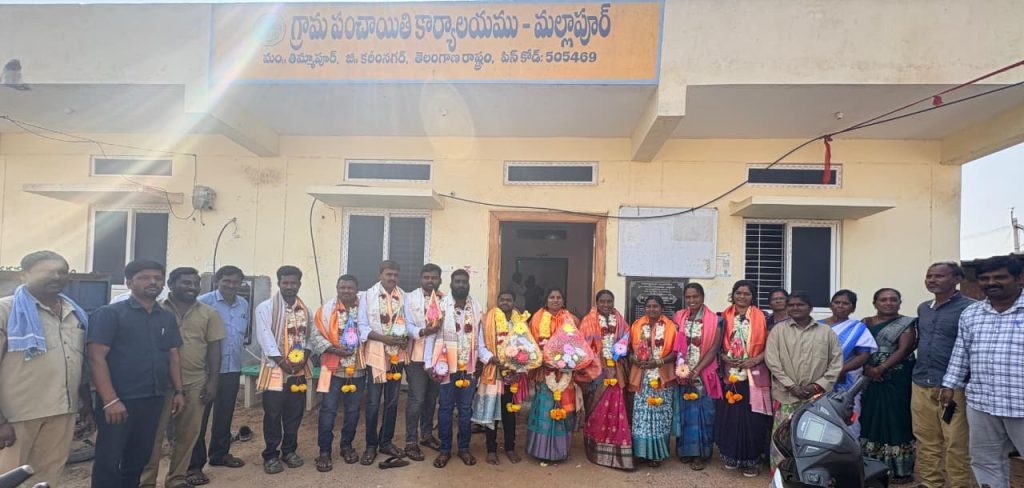 పయనించే సూర్యుడు జనవరి 6 కరీంనగర్ న్యూస్: మల్లాపూర్ గ్రామ ప్రజలు అందరు భారీ మెజార్టీతో గెలిపించినందుకు గ్రామ ప్రజలకు ధన్యవాదాలు మల్లాపూర్ గ్రామ సర్పంచ్ మామిడి మమత సతీష్ మాట్లాడుతూ గ్రామ అభివృద్ధి కి కోటి రూపాయల పై చిలుకు పనులు చేసినను గ్రామంలో నూతన గ్రామపంచాయతీ భావనాన్ని నిర్మించినాను గ్రామంలో ఉన్న సమస్యలను ఎప్పటికప్పుడు పూర్తి చేస్తానని అన్నారు గ్రామంలో సమస్యలు ఏమైనా ఉంటే పాలకవర్గంతో చర్చించి వాటిని పూర్తిస్థాయిలో వివరిస్తానని అన్నారు గ్రామంలో సీసీ కెమెరాలు ఏర్పాటు చేస్తామని అన్నారు గ్రామ ప్రజలు పాలక వర్గం తో ప్రమాణ స్వీకారం అంగరంగ వైభవంగా చేసినాము గ్రామ సమస్యలపై అవగాహన ఉన్న వ్యక్తిగా గ్రామ అభివృద్ధికి గ్రామ ప్రజల సహకారం తో మల్లాపూర్ గ్రామమును జిల్లాలోని మోడల్ గ్రామపంచాయతీగా తీర్చిదిద్దుతానని అన్నారు గ్రామంలో సిసి రోడ్డు డ్రైనేజీలు రైతులకు ఐకెపి సెంటర్ మరియు అక్కాచెల్లెళ్లకు దసరా పండుగ వరకు బతుకమ్మ షూట్ ను ఏర్పాటు చేస్తామని అన్నారు ఇల్లు లేని నిరుపేదలకు ఇందిరమ్మ ఇల్లు ఇప్పిస్తామని అన్నారు గ్రామంలో విధి దీపాలను ఎప్పటికప్పుడు పెట్టిస్తామని అన్నారు గ్రామంలో నూతన సిసి రోడ్లు డ్రైనేజీలు గ్రామం శుభ్రంగా ఉండేందుకు చర్యలు తీసుకుంటామని అన్నారు గ్రామ ప్రజలతో అభివృద్ధి కార్యక్రమంలో భాగంగా ప్రజలందరికీ గ్రామంలో అందుబాటులో ఉంటాము ఏ కష్టం వచ్చినా మీ ఇంటి పెద్ద బిడ్డలాగా మీ వెంటే ఉంటూ ప్రజల కష్టాలను మా కష్టాలుగా ముందుంటామని అన్నారు మేము ఇచ్చిన హామీలను ప్రజలతో మమేకమై వాటిని అధికారుల దృష్టికి తీసుకుపోయి సాంక్షన్ చేయించుకొని మాకు ఉన్న సమయంలో వాటిని పూర్తి చేస్తామని అన్నారు గ్రామ అభివృద్ధి లక్ష్యంగా నిస్వార్థపరులు అందరికీ అన్నివేళలా అందుబాటులో ఉంటామని అన్నారు ఈయొక్క కార్యక్రమంలో ఉప సర్పంచ్ వార్డు సభ్యులు గ్రామ ప్రజలు తదితరులు పాల్గొన్నారు