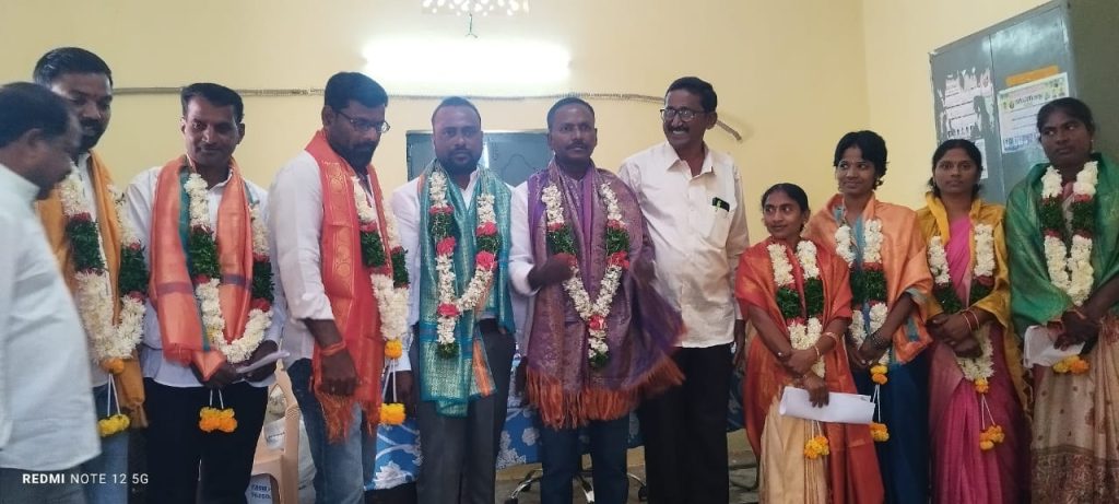 పయనించే సూర్యుడు జనవరి 7 కరీంనగర్ న్యూస్: నల్లగుంటపల్లి గ్రామ ప్రజలు అందరు భారీ మెజార్టీతో గెలిపించినందుకు గ్రామ ప్రజలకు ధన్యవాదాలు నల్లగుంటపల్లి గ్రామ సర్పంచ్ వడ్లూరి అంజయ్య మాట్లాడుతూ గ్రామ అభివృద్ధి కి ఎన్నికలలో ఇచ్చిన హామీలు నల్లగుంటపల్లి గ్రామంలో హనుమాన్ నగర్ హనుమాన్ టెంపుల్ వరకు సిసి రోడ్డు కరెంటు స్తంభాలు మరియు విధి దీపాలు మరియు డ్రైనేజీ పనులను త్వరలోనే ప్రారంభించి పూర్తి చేస్తామని అన్నారు గ్రామంలో పోచమ్మ గుడి వరకు సిసి రోడ్డు కరెంటు డ్రైనేజీ పోచమ్మ గుడి చుట్టూ కాంపౌండ్ ను అతి తొందర్లోనే పనులు ప్రారంభించి పూర్తి చేస్తానని అన్నారు దుర్షేడ్ ఎక్స్ రోడ్డు నుండి గ్రామానికి వీధిదీపాలు అతి త్వరలోనే చేపిస్తానని అన్నారు గ్రామంలో ఉన్న సమస్యలను ఎప్పటికప్పుడు పూర్తి చేస్తానని అన్నారు గ్రామంలో సమస్యలు ఏమైనా ఉంటే పాలకవర్గంతో చర్చించి వాటిని పూర్తిస్థాయిలో. చేస్తానని అన్నారు గ్రామంలో సీసీ కెమెరాలు ఏర్పాటు చేస్తామని అన్నారు గ్రామ ప్రజలు పాలక వర్గం తో ప్రమాణ స్వీకారం అంగరంగ వైభవంగా చేసినాము గ్రామ సమస్యలపై అవగాహన ఉన్న వ్యక్తిగా గ్రామ అభివృద్ధికి గ్రామ ప్రజల సహకారం తో నల్లగుంటపల్లి గ్రామమును మోడల్ గ్రామపంచాయతీగా తీర్చిదిద్దుతానని అన్నారు గ్రామంలో సిసి రోడ్డు డ్రైనేజీలు ఇల్లు లేని నిరుపేదలకు అర్హులైన వారందరికీ ఇందిరమ్మ ఇల్లు పించన్లు ఇప్పిస్తామని అన్నారు గ్రామంలో విధి దీపాలను ఎప్పటికప్పుడు పెట్టిస్తామని అన్నారు గ్రామంలో నూతన సిసి రోడ్లు డ్రైనేజీలు గ్రామం శుభ్రంగా ఉండేందుకు చర్యలు తీసుకుంటామని అన్నారు గ్రామ ప్రజలతో అభివృద్ధి కార్యక్రమంలో భాగంగా ప్రజలందరికీ గ్రామంలో అందుబాటులో ఉంటాము ఏ కష్టం వచ్చినా మీ ఇంటి పెద్ద కొడుకుల మీ వెంటే ఉంటూ ప్రజల కష్టాలను మా కష్టాలుగా ముందుంటామని అన్నారు మేము ఇచ్చిన హామీలను ప్రజలతో మమేకమై వాటిని అధికారుల దృష్టికి తీసుకుపోయి సాంక్షన్ చేయించుకొని మాకు ఉన్న సమయంలో వాటిని పూర్తి చేస్తామని అన్నారు గ్రామ అభివృద్ధి లక్ష్యంగా నిస్వార్థపరులు అందరికీ అన్నివేళలా అందుబాటులో ఉంటామని అన్నారు ఈయొక్క కార్యక్రమంలో ఉప సర్పంచ్ వార్డు సభ్యులు గ్రామ ప్రజలు తదితరులు పాల్గొన్నారు