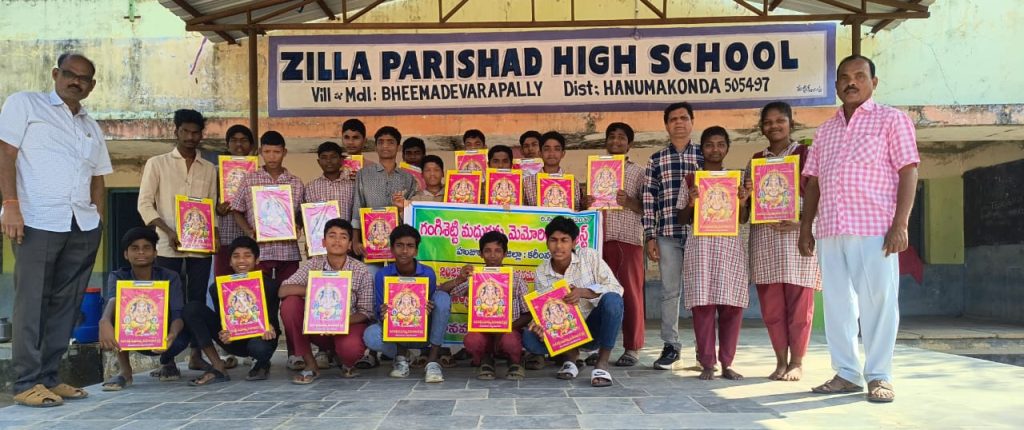 పయనించే సూర్యుడు జనవరి 07 ఎన్ రజినీకాంత్:- కరీంనగర్ జిల్లా హుజురాబాద్ కు చెందిన గంగిశెట్టి మధురమ్మ మెమోరియల్ ట్రస్ట్ ఆధ్వర్యంలో హనుమకొండ జిల్లా భీమదేవరపల్లి మండలంలోని భీమదేవరపల్లి, ముల్కనూర్, మల్లారం, కొత్తకొండ గ్రామాలలోని పదవ తరగతి చదువుతున్న 81 మంది విద్యార్థిని, విద్యార్థులకు ట్రస్ట్ నిర్వాహకులు గంగిశెట్టి జగదీశ్వర్ మంగళవారం పరీక్ష ప్యాడ్లూ పంపిణీ చేశారు.. ఈ సందర్భంగా ట్రస్ట్ నిర్వాహకులు మాట్లాడుతూ 2011 సంవత్సరం నుండి ప్రభుత్వ పాఠశాలలో చదువుతున్న విద్యార్థిని, విద్యార్థులకు పరీక్ష ప్యాడ్లు అందిస్తున్నామని, గణితం, సైన్స్ లలో టాలెంట్ టెస్టులు నిర్వహించి ప్రోత్సాహ బహుమతి అందిస్తున్నట్లు తెలిపారు.. విద్యార్థులు బాగా చదివి, ఉన్నత స్థాయిలో జీవించాలని సూచించారు.. ఈ కార్యక్రమంలో ట్రస్ట్ సిబ్బంది, ప్రధానోపాధ్యాయులు, ఉపాధ్యాయుల బృందం తదితరులు పాల్గొన్నారు..