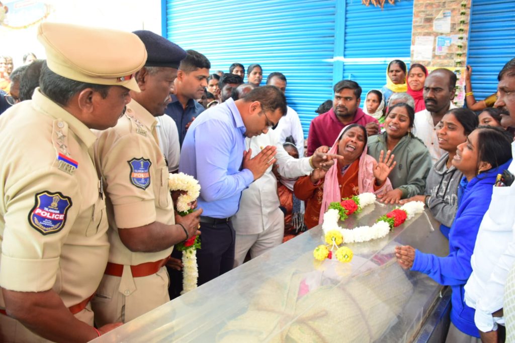 పయనించే సూర్యుడు న్యూస్ జనవరి 7 రాజన్న సిరిసిల్ల జిల్లా(స్టాఫ్ రిపోర్టర్ ఎమ్.ఎ. షకీల్) దేవయ్య కుటుంబానికి ఎల్లవేళలా అందుబాటులో ఉంటామని,26 సంవత్సరాలు పోలీస్ శాఖలో విధులు నిర్వహించిన దేవయ్య మరణం తీరని లోటుని జిల్లా ఎస్పీ తెలియజేశారు.సోమవారం రోజున విధులు ముగించుకొని ఇంటికి వెళ్తున్న సమయంలో సిరిసిల్ల బైపాస్ ప్రాంతంలోని క్రషర్ వద్ద రోడ్డు ప్రమాదంలో మరణించిన దేవయ్య అంతః క్రియలలో పాల్గొని దేవయ్య పార్తివదేహానికి పుష్పాంజలి ఘటించి నివాళులర్పించడం జరిగింది. స్వర్గస్తులైన దేవయ్య కు భార్య,నాలుగురు పిల్లలు ఉన్నారు.పోలీసు వ్యవస్థకు హోం గార్డ్ దేవయ్య మరణం తీరని లోటుని, బాధిత కుటుంబ సభ్యులకు పోలీసు శాఖ ఎల్లవేళలా అందుబాటులో ఉంటూ అన్ని సహాయ సహకారాలు అందిస్తామని హామీ ఇచ్చారు. ఎస్పీ వెంట డిఎస్పీ నాగేంద్రచారి, సి.ఐ లు నాగేశ్వరరావు, రవి, మొగిలి, ఆర్.ఐ కు మధుకర్,యాదగిరి, రమేష్, ఎస్.ఐ ఉపేంద్రచారి, పోలీస్ సిబ్బంది ఉన్నారు.