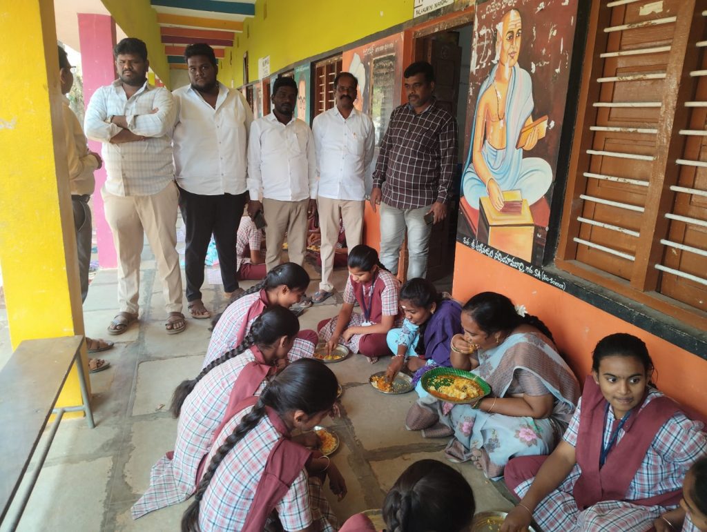 పయనించే సూర్యుడు జనవరి 10 (జనగామ ప్రతినిధి కమ్మగాని నాగన్న) పాలకుర్తి మండల కేంద్రంలోని ప్రభుత్వ జిల్లా పరిషత్ పాఠశాలను మేజర్ గ్రామపంచాయతీ సర్పంచ్ కమ్మగాని విజయ నాగన్న సందర్శించినారు శుక్రవారంవిద్యార్థినిలతో కలిసి భోజనం చేసి, భోజనంలో నాణ్యతపెంచాలని ,అదేవిధంగా మెనూ ప్రకారం విద్యార్థులకు భోజనాన్ని అందించాలని, విద్యార్థుల యొక్క ఆరోగ్యాన్ని దృష్టిలో ఉంచుకొని ప్రభుత్వం వివిధ రకాల కూరగాయలతో భోజనాన్ని అందిస్తుందని కాబట్టి విద్యార్థులు ఆరోగ్యంగా ఉండే విధంగా వంట మనుషులు ,అదే విధంగా పాఠశాల ప్రధానోపాధ్యాయులు కూడా బాధ్యతగా ఉండలని సూచించారు,ఈ సందర్భంగా రేపటినుండి సంక్రాంతి సెలవులు రాబోతున్నాయని విద్యార్థులు ఇంటి వద్ద పతంగులు ఎగురవేసేటప్పుడు జాగ్రత్త వహించాలని, అవి ఎగరవేసేటప్పుడు విద్యుత్ ప్రమాదాలు జరగడం ఇంటి పైకప్పుల నుండి కింద పడడం వంటివి జరిగే ప్రాణాలకే ప్రమాదం వచ్చే అవకాశం ఉంటుందని ఈ విషయాన్ని విద్యార్థుల తల్లిదండ్రులు ఎప్పటికప్పుడు పిల్లలపై నిఘా పెట్టాలని సూచించారు. అదేవిధంగా సంక్రాంతి పండుగను పిల్లలు తల్లిదండ్రులు కుటుంబ సభ్యులు అందరితో కలిసి సంతోషంగా జరుపుకోవాలని కోరుతూ విద్యార్థులకు ఉపాధ్యాయులకు అదే విధంగా విద్యార్థుల తల్లిదండ్రులకు అందరికీ కూడా సంక్రాంతి పండుగ శుభాకాంక్షలు తెలియజేయడం జరిగింది ఈ కార్యక్రమంలో ఉపసర్పంచ్ గాదపాక కిరణ్, వార్డు సభ్యులు కమ్మగాని శ్రీకాంత్ గౌడ్, పంచాయతీ కార్యదర్శి వెంకటాచారి, కమ్మగాని వెంకటేష్, ప్రధానోపాధ్యాయలు శోభారాణి ఉపాధ్యాయులు మల్లికార్జున రమేష్, విద్యార్థులు తదితరులు పాల్గొన్నారు