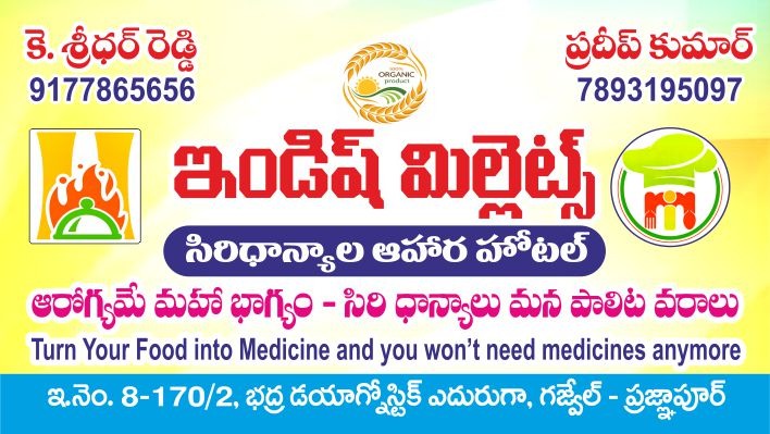 పయనించే సూర్యడు గజ్వెల్ జనవరి 11 గజ్వెల్ నియోజకవర్గం ఇంచార్జి ఏం ఎస్ రసూల్ సిద్దిపేట జిల్లా గజ్వెల్ పట్టణంలో ని ప్రభుత్వం అస్పటల్ ఏ దురుగా ఇండిష్ మిల్లెట్స్ సిరి ధన్యల ఆహారం హోటల్ శనివారం రోజున సిద్దిపేట జిల్లా సిద్దిపేట జిల్లా అధ్యక్షులు. రాలు అక్షయి రెడ్డి చేతుల మీదుగా ప్రారంభించరూఈ సందర్బంగా ఆమె మాట్లాడుతూ భారత దేశం వ్యాపాతంగా బైయో కెమికల్ ఆహారం హోటల్లో ఉన్న విషయం తెలిసిందే అందుకు అనుగుణంగా సిరి ధన్యలతో ఆరోగ్య మే మహాభాగ్యం రీతిలో నేచురల్ మన పాలిట వరాలు లాగా ప్రతి ఐటమ్ సిరులు ధన్యలో అందిస్తూ మన హోటల్ యజమాని కె శ్రీనివాస్ రెడ్డి. ప్రదీఫ్ కుమార్ గజ్వెల్ పట్టణ ప్రజలకు అందుబాటులో ఉండి సేవలు అందిస్తున్న వారికీ శుభాకాంక్షలు తెలిపారు అదేవిధంగా ఇటీవంటి ఆహారాన్ని మీరంతా ఆదరించాలని ఆమె కోరారు ఈ కార్యక్రమం లో కాంగ్రెస్ పట్టణ అధ్యక్షుడు. కాంగ్రెస్ కార్యకర్తలు తదితరులు పాల్గొన్నారు
