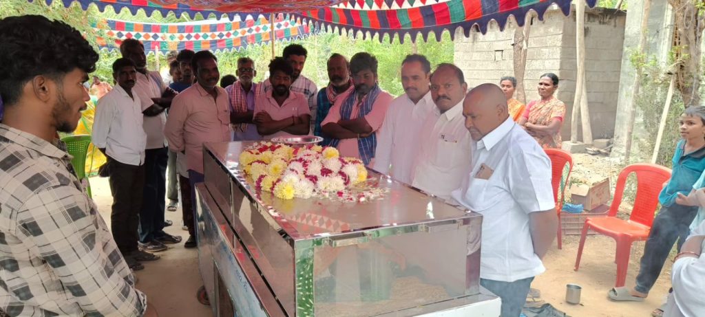 పయనించే సూర్యుడు న్యూస్ : జనవరి 11, తల్లాడ రిపోర్టర్ తల్లాడ మండలం నారాయణపురం గ్రామం లో తడికమళ్ళ సంజీవరావు ఈరోజు తెల్లవారుజామున గుండెపోటుతో స్వర్గస్తులైనారు ఈ విషయం తెలుసుకున్న బిఆర్ఎస్ పార్టీ తల్లాడ మండల అధ్యక్షులు రెడ్డెం వీర మోహన్ రెడ్డి గారు, తల్లాడ మేజర్ గ్రామపంచాయతీ సర్పంచ్ పెరిక నాగేశ్వరావు (చిన్నబ్బాయి) గారు సంజీవరావు భౌతికకాయాన్ని సందర్శించి నివాళులర్పించారు. అనంతరం కుటుంబ సభ్యులను ఓదార్చారు. ఈ కార్యక్రమంలో ఉప సర్పంచ్ కర్నాటి లక్ష్మారెడ్డి, వార్డు మెంబర్లు మరియు బిఆర్ఎస్ పార్టీ తల్లాడ మండల టౌన్ ఉపాధ్యక్షులు సంఘసాని శ్రీను మరియు ముఖ్య నాయకులు పాల్గొన్నారు.