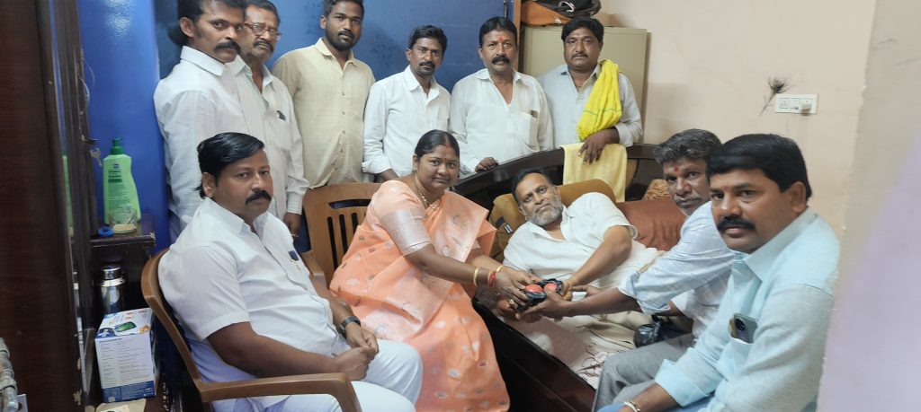 పయనించే సూర్యుడు జనవరి 11 కర్నూలు జిల్లా ఇంచార్జ్ శ్రీకాంత్ ఆదోని పట్టణంలో హనవాళ్లు గ్రామం నకు చెందిన తెలుగుదేశం పార్టీ సీనియర్ నాయకుడు హనవాలు మా భాషకు ఆరోగ్యం ఇటీవల బైపాస్ సర్జరీ చేసుకొని ఇంటికి వచ్చిన సందర్భంగా, ఆయనను పరామర్శించేందుకు, కర్నూలు జిల్లా తెలుగుదేశం పార్టీ శ్రీమతి గుడిసె ఆది కృష్ణమ్మ ప్రత్యేకంగా మాభాష ని కలిసి వారి ఆరోగ్య పరిస్థితిని తెలుసుకొని, త్వరగా కోలుకోవాలని ధైర్యం గా ఉండాలి అని “పార్టీ తరఫున పూర్తి మద్దతు ఉంటుంది. ఆయన త్వరగా కోలుకొని మళ్లీ ప్రజాసేవలో ముందుండాలని మనస్ఫూర్తిగా కోరుకుంటున్నాం” అని తెలిపారు. ఈ కార్యక్రమంలో బుద్ధారెడ్డి ఎక్స్ ఎంపీపీ మురళి మల్లికార్జున, ఎక్స్ కౌన్సిలర్ మారుతి, బాబురావు సాదిక్ వలి భాస్కర్ చంద్ర, దేవేంద్ర, రాజశేఖర్ రాజు తదితరులు పాల్గొన్నారు.
