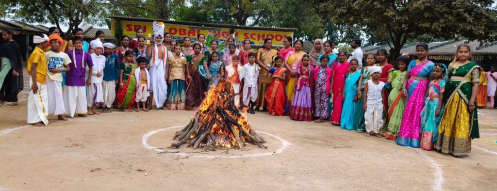 పయనించే సూర్యుడు జనవరి 11 (చింతకాని మండలం రిపోర్టర్. వేర్పుల కోటేశ్వరరావు) చింతకాని మండలం నాగులవంచ గ్రామంలో ఉన్నటువంటి శ్రీ గ్లోబల్ హైస్కూల్లో సంక్రాంతి పండుగను విద్యార్థులు, ఉపాధ్యాయులు ఘనంగా నిర్వహించారు. ఈ సందర్భంగా పాఠశాల ప్రాంగణాన్ని పండుగ వాతావరణంతో అలంకరించారు. విద్యార్థులు రంగురంగుల సాంప్రదాయ వస్త్రధారణలో పాల్గొని అందరినీ ఆకట్టుకున్నారు. సంక్రాంతి ప్రత్యేకతను తెలియజేసే విధంగా భోగిమంటలు ఏర్పాటు చేసి పండుగ ప్రాముఖ్యతను విద్యార్థులకు వివరించారు. బాలికలు సాంప్రదాయ నృత్యాలు, అలంకరణతో పండుగ ఉత్సాహాన్ని రెట్టింపు చేశారు. గ్రామీణ సంస్కృతి ప్రతిబింబించే కార్యక్రమాలు ప్రత్యేక ఆకర్షణగా నిలిచాయి. పాఠశాల ఆవరణాన్ని రంగురంగుల ముగ్గులతో అలంకరించడం జరిగింది. ఈ కార్యక్రమంలో పాఠశాల యాజమాన్యం, ఉపాధ్యాయులు మాట్లాడుతూ విద్యార్థుల్లో భారతీయ సాంప్రదాయాలపై అవగాహన పెంపొందించడమే ఇలాంటి వేడుకల లక్ష్యమని తెలిపారు. ఈ కార్యక్రమం విద్యార్థుల్లో ఆనందం, ఉత్సాహాన్ని నింపిందని ప్రశంసించారు.