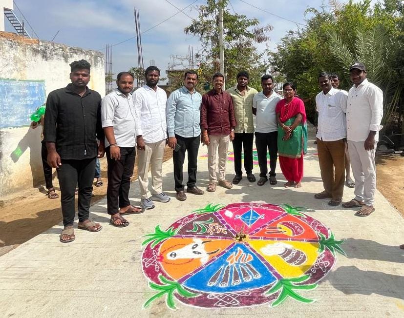 పయనించే సూర్యుడు జనవరి 13, మహబూబ్ నగర్ జిల్లా రిపోర్టర్ నరిగె కళాశేఖర్: సంక్రాంతి పండుగ సంబరాల్లో భాగంగా సోమవారం రాయపల్లి గ్రామంలో ముగ్గుల పోటీలను గ్రామంలోని 3వ వార్డు సభ్యురాలు బుజాగౌని అరుణ మల్లేష్ గౌడ్ ఆధ్వర్యంలో వైభవంగా నిర్వహించారు. పండుగ వాతావరణం ఉట్టిపడేలా మహిళలు, యువతులు రంగురంగుల ముగ్గులతో వీధులను ముస్తాబు చేశారు. అనంతరం ఏర్పాటు చేసిన బహుమతి ప్రధానోత్సవంలో గ్రామ సర్పంచ్ గాయత్రి మల్లేష్ గౌడ్ మాట్లాడుతూ, గ్రామీణ సంస్కృతిని, సంప్రదాయాలను ప్రతిబింబించే ఇలాంటి కార్యక్రమాలు నిర్వహించడం అభినందనీయమని ,గెలుపొందిన విజేతలకు బహుమతులు అందజేశారు. ఈ కార్యక్రమంలో సర్పంచ్ కిష్టారం గాయత్రి మల్లేష్ గౌడ్ , గ్రామ ఉపసర్పంచ్ పాలెం ప్రవీణ్ గౌడ్, మాజీ సర్పంచులు కమ్మదనం నర్సింహులు గౌడ్, నేరళ్ళ గంగాధర్ గౌడ్, లింగం, శివ, శ్రీను, తిరుపతి, వంశీ, శంకర్ తో పాటు వార్డు సభ్యులు, మహిళలు పెద్ద ఎత్తున పాల్గొన్నారు.
