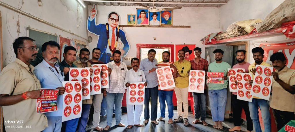 పయనించే సూర్యుడు జనవరి 13 ఆదోని రూరల్ రిపోర్టర్ భారత కమ్యూనిస్టు పార్టీ (సీపీఐ) స్థాపనకు వందేళ్లు పూర్తయిన సందర్భంగా, జనవరి 18న ఖమ్మంలో జరగనున్న భారీ బహిరంగ సభకు మద్దతుగా, ఆదోని పట్టణంలో జనవరి 16న ర్యాలీ మరియు పబ్లిక్ మీటింగ్ నిర్వహించేందుకు ఏర్పాట్లు చేసినట్లు సీపీఐ పట్టణ సహాయ కార్యదర్శిలు కే రమేష్ కుమార్, లక్ష్మీనారాయణ నాయకులు తెలిపారు.ఈ కార్యక్రమానికి సంబంధించిన ప్రచారంలో భాగంగా, ద్విచక్ర వాహనాలు, ఆటోలకు అంటించేందుకు వీలుగా రూపొందించిన స్టిక్కర్లను విడుదల చేశారు. ఈ స్టిక్కర్ల ద్వారా ప్రజల్లో సీపీఐ వందేళ్ల చరిత్ర, ప్రజా పోరాటాల ప్రాధాన్యతను తెలియజేస్తూ ఖమ్మం సభను విజయవంతం చేయడానికి మద్దతు సమీకరించనున్నట్లు తెలిపారు. ఈ సందర్భంగా నాయకులు మాట్లాడుతూ, కార్మికులు, రైతులు, యువత, ప్రజల హక్కుల కోసం వందేళ్లుగా సీపీఐ సాగిస్తున్న పోరాటాలకు గుర్తింపుగా ఖమ్మంలో నిర్వహిస్తున్న భారీ బహిరంగ సభకు ప్రజలంతా పెద్ద సంఖ్యలోతరలి రావాలని, అలాగే ఆదోనిలో జరగనున్న జనవరి 16 ర్యాలీ, పబ్లిక్ మీటింగ్ను విజయవంతం చేయాలని పిలుపునిచ్చారు. ఈ కార్యక్రమంలో యాయ్ వైఫ్ పట్టణ కార్యదర్శి అంజిత్ గౌడ్ రైతు సంఘం కార్యదర్శి బసాపురం గోపాల్ శాఖ కార్యదర్శి విజయ్ ఆటో యూనియన్ నాయకులు నరసింహులు శ్రీరాములు భాష షేక్షావలి నాగరాజు వరప్రసాద్ రఫీ తదితరులు పాల్గొన్నారు.