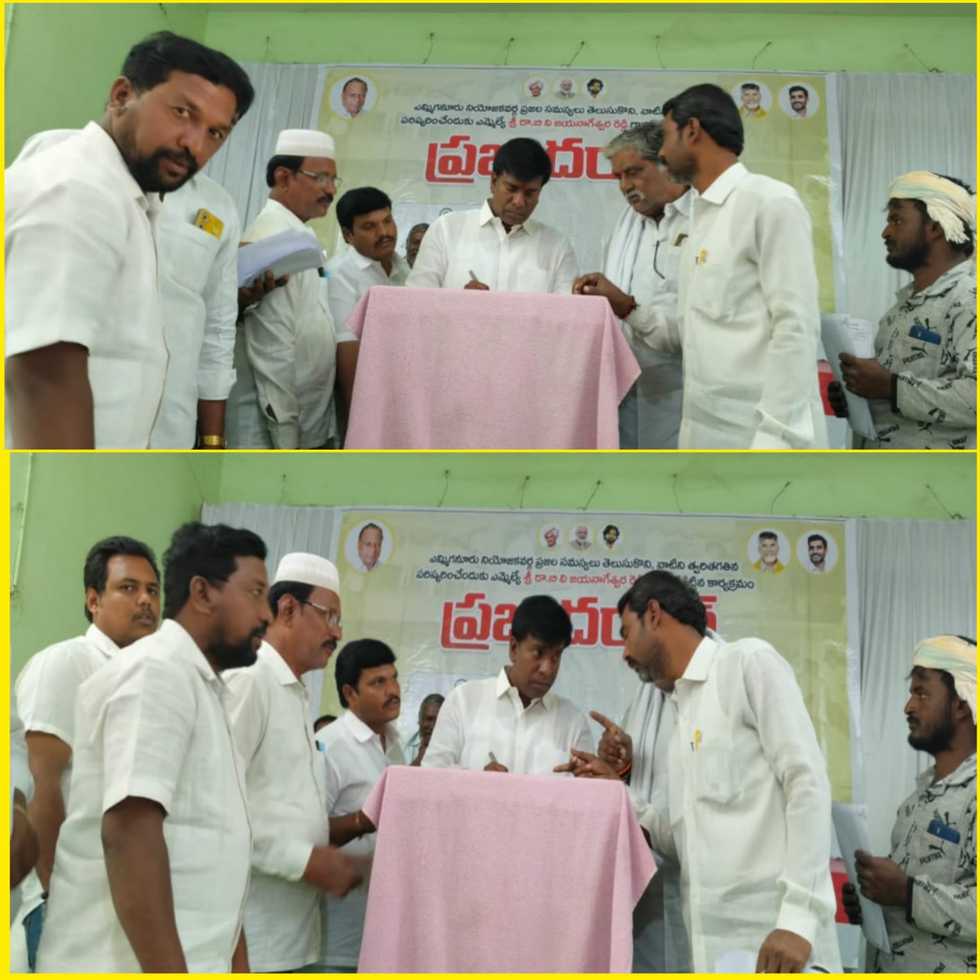 పయనించే సూర్యుడు న్యూస్ జనవరి 14, 2026 గోనెగండ్ల రిపోర్టర్ సురేష్ నాయుడు ఎమ్మిగనూరు కుర్ణి కల్యాణ మండపం లోఎమ్మెల్యే బివి జయ నాగేశ్వర రెడ్డి నిర్వహించిన, గోనెగండ్ల మండల ప్రజల సమస్యల కొరకు పరిస్కారం కొరకు ప్రజాదర్భార్ నిర్వహించారు. ఈ సందర్బంగా గోనెగండ్లకు చెందిన టిడిపి నాయకులు ఎన్ వి బాబు నాయుడు, అడ్వకేట్ చంద్రశేఖర్,మాజీ సర్పంచ్ రంగముని, పోలకల్ వెంకటేశ్వర్లు గోనెగండ్ల నుండి తిమ్మప్ప కొండ టూ గువ్వల దొడ్డి అలాగే గోనెగండ్ల టూ గుల్ల మొరుసు గ్రామాలకు బీటి రోడ్డు వేయాలని కోరారు. ఈ రోడ్లలో కొన్ని దశబ్దాలుగా పొలాలకు వెళ్లే రైతులకు, అలాగే గోనెగండ్ల నుండి గువ్వల దొడ్డి, గుల్లమొరుసు వెళ్లే ప్రయాణికులు చాలా ఇబ్బందులకు గురవుతున్నారని, రోడ్లపై ఎన్నిమార్లు గ్రావెల్ వేయించిన వర్ష కాలంలో రోడ్లు గుంతలు పడి ఎద్దుల బండ్లు, వాహనాలు, ప్రమాదాలు జరిగి చాలామంది గాయలాపాలు అవుతున్నారు. రోడ్డు పక్కన పొలాల రైతులు ఎదురేదురు వెళ్ళాడనికి లేనంతగా రోడ్డును దగ్గరగా జరిపి రస్తాను రైతులు కబ్జాచేసి చాలా ఇరుకుగా చేశారని, ఎమ్మెల్యే బివీ జయ నాగేశ్వర రెడ్డి దృష్టికి తీసుకెళ్లడం జరిగింది. మాగ్రామ ప్రజల, రైతుల ఇబ్బందులను దృష్టిలో ఉంచుకుని గోనెగండ్ల నుండి గువ్వల దొడ్డి, గోనెగండ్ల నుండి గుల్ల మొరుసు గ్రామాలకు రోడ్డు వేసి ప్రజల, రైతుల సమస్యలను తీర్చాలని నాయకులు కోరారు. సానుకూలంగా స్పందించిన ఎమ్మెల్యే బివీ కచ్చితంగా ఈ సమస్యను ముఖ్యమంత్రి చంద్రబాబు, డిప్యుటీ సియం పంచాయతీరాజ్ శాఖ మంత్రి పవన్ కళ్యాణ్ దృష్టికి సమస్యను కేసుకెళ్లి కచ్చితంగా రోడ్లు మంజూరు. చేసేవిదంగా చేస్తానని హామీ ఇచ్చారు.ఈ కార్యక్రమం లో టౌన్ అధ్యక్షులు మహేళ రహమతుల్లా, చంద్రయ్య తదితరులు పాల్గొన్నారు.