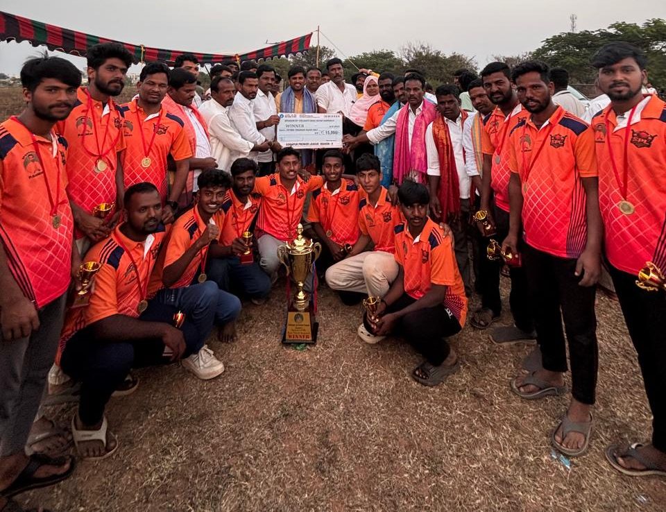 పయనించే సూర్యుడు జనవరి 14 షాద్ నగర్ నియోజకవర్గం ఇన్చార్జ్ నరేందర్ నాయక్ ) కొత్తూరు మండలం సిద్దాపూర్ గ్రామంలో గత మూడు రోజులుగా జరుగుతున్న క్రికెట్ టోర్నమెంట్ ముగిసింది. టోర్నమెంట్ విజేతగా మల్లేష్ మహారాజ్ జట్టు రెండవ విజేతగా జగదంబ జట్టు నిలిచింది. గెలుపొందిన జట్లకు గ్రామ సర్పంచ్ విస్లావత్ బాసు నాయక్ మరియు కాంగ్రెస్ పార్టీ సీనియర్ నాయకులు ఎల్లారం శేఖర్ రెడ్డి బహుమతులను అందజేశారు. అనంతరం సర్పంచ్ బాసు నాయక్ మాట్లాడుతూ… యువకులు క్రీడల్లో రాణించాలని, క్రీడల్లో ఉన్నత స్థాయికి ఎదగాలని, తమ యొక్క సహాయ సహకారాలు ఎల్లప్పుడూ ఉంటాయని అన్నారు. క్రీడాకారులు గ్రామీణ స్థాయి నుంచి రాష్ట్ర జాతీయస్థాయిలో రాణించాలని అన్నారు. మొదటి బహుమతి స్పాన్సర్ సర్పంచ్ విస్లావత్ బాసు నాయక్, రెండో బహుమతి స్పాన్సర్ గా ఉప సర్పంచ్ దొబ్బల యాదయ్య, జెర్సీ స్పాన్సర్ వార్డ్ సభ్యులు కవితా వెంకట్, నరసింహ, నందు, రాజు, కిషన్, మహిపాల్ వ్యవహరించారు. ఈ కార్యక్రమంలో గ్రామ పెద్దలు మరియు యువకులు క్రీడాకారులు తదితరులు పాల్గొన్నారు.