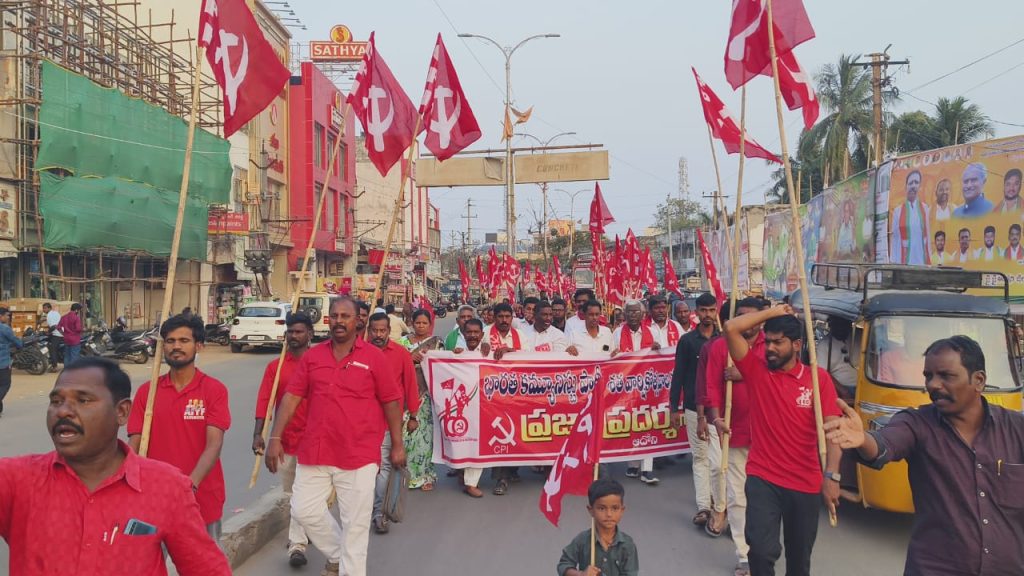 పయనించే సూర్యుడు జనవరి 18 కర్నూలు జిల్లా ఇంచార్జ్ శ్రీకాంత్ భారత కమ్యూనిస్టు పార్టీకి వందేళ్ల చరిత్ర ఉందని, కమ్యూనిజానికి ఎప్పటికీ మరణం లేదని సిపిఐ జిల్లా కార్యదర్శి బి. గిడ్డయ్య స్పష్టం చేశారు. సిపిఐ వందేళ్ల ఉత్సవాల సందర్భంగా ఖమ్మంలో జరగనున్న గొప్ప బహిరంగ సభకు సన్నాహకంగా ఆదోనిలో నిర్వహించిన ర్యాలీ, బహిరంగ సభలో ఆయన మాట్లాడారు. ఈ సందర్భంగా ఆదోని పట్టణంలోని స్థానిక అనంత మంగళ ఆంజనేయ స్వామి దేవాలయం నుంచి వందలాది మంది సిపిఐ కార్యకర్తలు, నాయకులు ఎర్రజెండాలతో పురవీధుల గుండా ర్యాలీగా బయలుదేరి మున్సిపల్ మైదానాన్ని చేరుకున్నారు. అనంతరం అక్కడ సిపిఐ పట్టణ కార్యదర్శి టి.వీరేష్ అధ్యక్షతనజరిగిన బహిరంగ సభలో బి. గిడ్డయ్య ప్రసంగించారు. ప్రస్తుత కూటమి ప్రభుత్వ విధానాలు ప్రజావ్యతిరేకంగా ఉన్నాయని ఆయన విమర్శించారు. దేశంలోని పేదలు, కూలీలకు జీవనాధారంగా ఉన్న జాతీయ గ్రామీణ ఉపాధి హామీ పథకం పేరును మార్చాలనే ప్రయత్నాలను సిపిఐ తీవ్రంగా వ్యతిరేకిస్తుందని స్పష్టం చేశారు. ఈ పథకాన్ని బలోపేతం చేయాల్సిన అవసరం ఉందని, కానీ పేర్లు మార్చడం ద్వారా ప్రజలను మోసం చేయాలని ప్రభుత్వం చూస్తోందని ఆరోపించారు. కార్మికులు, రైతులు, కూలీల హక్కుల కోసం కమ్యూనిస్టు పార్టీ వందేళ్లుగా పోరాటం చేస్తోందని, భవిష్యత్తులో కూడా అదే స్ఫూర్తితో ప్రజల పక్షాన నిలబడుతుందని బి. గిడ్డయ్య తెలిపారు. ఖమ్మంలో జరగనున్న సిపిఐ వందేళ్ల గొప్ప బహిరంగ సభను జయప్రదం చేయాలని కార్యకర్తలకు ఆయన పిలుపునిచ్చారు.ఈ కార్యక్రమంలో సిపిఐ జిల్లా కార్యవర్గ సభ్యులు ఎస్ సుదర్శన్ సిపిఐ సీనియర్ నాయకులు కే అజయ్ బాబు ఆలూరు సిపిఐ నియోజకవర్గ కార్యదర్శి భూపేష్, ఆలూరు రైతుకూలీ సంఘం కార్యదర్శి రామచంద్ర, ఏఐటీయూసీ పట్టణ కార్యదర్శి బి వెంకన్న, ఏపీ రైతు సంఘం నియోజకవర్గ కార్యదర్శి బసాపురం గోపాల్, సిపిఐ పట్టణ సహాయ కార్యదర్శి యు లక్ష్మీనారాయణ ఏఐఎస్ఎఫ్ జిల్లా కార్యదర్శి సాబీర్ బాషా పట్టణ కార్యదర్శి దస్తగిరి డిహెచ్పిఎస్ జిల్లా సంస్థలు విజయ్ సిపిఐ నాయకులు కుమార్ స్వామి, కార్యకర్తలు ,మహిళలు పెద్ద సంఖ్యలో పాల్గొని పార్టీ నినాదాలతో సభా ప్రాంగణాన్ని మారుమోగించారు.
