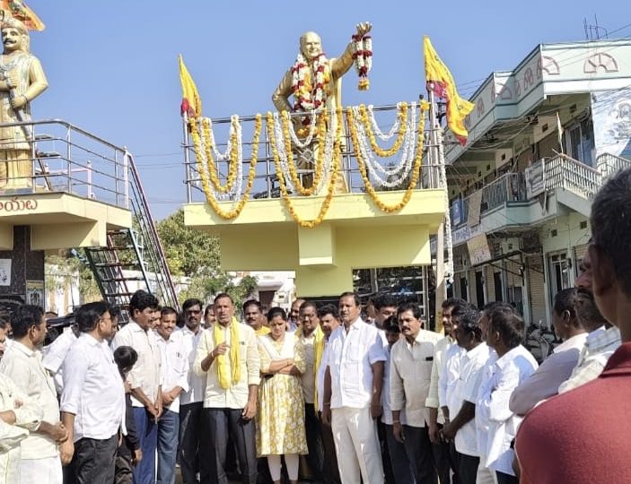 పయనించే సూర్యుడు న్యూస్ జనవరి 19 (శర్మాస్ వలి మండల రిపోర్టర్ యాడికి) మండల కేంద్రమైన యాడికి నందు నందమూరి తారక రామారావు 30వ వర్ధంతి సందర్భంగా నందమూరి తారక రామారావు విగ్రహానికి పాలాభిషేకం చేసి అనంతరం పూలమాలలతో నివాళులర్పించారు. ఈ సందర్భంగా టి.డి.పి. మండల కన్వీనర్ దడియాల ఆదినారాయణ మాట్లాడుతూ ఆ మహనీయుడికి సినీ వినీలాకాశంలో ధృవతారగా వెలిగి, రాజకీయ కురుక్షేత్రంలో అజేయుడైన ‘అన్న’ ఎన్టీఆర్ తరతరాల చరిత్రను తిరగరాసిన ధీరోదాత్తుడు,తెలుగు వారి ఆత్మగౌరవాన్ని ఆకాశమంత ఎత్తులో నిలబెట్టేందుకు పోరాటం చేసిన ఆయన మనందరికీ ప్రాతఃస్మరణీయుడు. కిలో రెండు రూపాయల బియ్యం, సామాజిక భద్రతా పింఛన్లు, పక్కా ఇళ్ల నిర్మాణం, రైతుకు విద్యుత్, మండల వ్యవస్థతో స్థానిక స్వపరిపాలన, ఆడబిడ్డలకు ఆస్తిలో హక్కు, రాయలసీమకు సాగు, తాగునీటి ప్రాజెక్టులు లాంటి అనితరసాధ్యమైన సంక్షేమ అభివృద్ధి పథకాలతో చరిత్ర గతిని మార్చిన ఆ మహనీయుడు మనకు ఆదర్శం. అని ఆయన తెలిపారు. ఈ కార్యక్రమంలో టౌన్ ప్రెసిడెంట్ వెలిగండ్ల ఆదినారాయణ, బి.సి.సెల్ అధ్యక్షుడు తిరంపురం రంపురం నీలకంఠ, మాజీ ఎం.పీ.పీ.వేలూరి రంగయ్య, సీనియర్ నాయకులు గొర్తిరుద్రమ నాయుడు, మాదాల అనిల్ కుమార్, మార్కెట్ యార్డ్ డైరెక్టర్ పరిమి శ్రీహరి, పరిమిచరణ్, మధురాజ్, బొట్టుశేఖర్, నెట్టికంటయ్య, రాజశేఖర్, చిట్టి బాబు, దాసరి రామచంద్ర, సుభహాన్, విశ్వనాథ్, సెల్ పాయింట్ చాంద్ బాషా, కోటవీధి సెక్ష, రహంతుల్లా, ఫైబర్ చందు, ఫిరోజ్ బాషా, హాజీ పీరా, మహమ్మద్ రఫీ, తెల్లాకుల కేశవ, నంద్యాల రంగస్వామి, తదితర తెలుగుదేశం నాయకులు, కార్యకర్తలు, జె.సి. అభిమానులు ఈ కార్యక్రమంలో పాల్గొన్నారు..