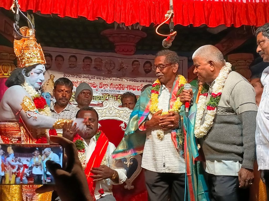 పయనించే సూర్యుడు జనవరి 20, మహబూబ్ నగర్ జిల్లా రిపోర్టర్ నరిగె కళాశేఖర్: మహబూబ్ నగర్ రూరల్ గాజుల పేట గ్రామంలో శ్రీగాజేశ్వర నాట్య కళామండలి, తెలంగాణ రాష్ట్ర భాషా సాంస్కృతిక శాఖ, సంగీత నాటక అకాడమీ సంయుక్త ఆధ్వర్యంలో నిర్వహించిన పౌరాణిక నాటక ప్రదర్శనలు కనువిందు చేశాయి. ఈ నెల 16, 17 తేదీలలో సంగీత దర్శకులు ఎం. అడవి రాముడు సారధ్యంలో ‘శ్రీకృష్ణ రాయబారం’లో వివిధ పౌరాణిక అంకాలను ప్రదర్శించారు.ఈ కార్యక్రమానికి ముఖ్య అతిథిగా హాజరైన మాజీ సంగీత నాటక అకాడమీ చైర్మన్ బాద్మి శివకుమార్, మాట్లాడుతూ.. నాటక రంగం ప్రస్తుత సినీ రంగానికి మాతృమూర్తి వంటిదని కొనియాడారు. పౌరాణిక నాటకాలు సమాజాన్ని ఆలోచింపజేయడమే కాకుండా, మనిషి జీవిత గమ్యానికి దిశానిర్దేశం చేస్తాయని అన్నారు. ఎలాంటి అశ్లీలత లేకుండా సాగే ఈ కళా రంగాన్ని ప్రజలందరూ ప్రోత్సహించాలని ఆయన కోరారు. ఈ సందర్భంగా మిత్ర నాట్య కళామండలి అధ్యక్షులు వి. నారాయణ, డి. జనార్ధన్ నాటకాన్ని ఉద్దేశించి ప్రసంగించారు. ఉమ్మడి మహబూబ్నగర్ జిల్లా నలుమూలల నుండి వచ్చిన ప్రముఖ రంగస్థల కళాకారులు తమ నటనతో ప్రేక్షకులను మెప్పించారు గ్రామానికి చెందిన ప్రముఖ కళాకారులు, ‘కళారత్న’ అవార్డు గ్రహీత కే.వి. చంద్రయ్య, ‘గాన గంధర్వ’ అవార్డు గ్రహీత బూదురు జంగయ్యలను నిర్వాహకులు ఘనంగా సన్మానించారు. ఈ కార్యక్రమంలో కార్యక్రమ నిర్వాహకులు, గాజేశ్వర నాట్య కళామండలి అధ్యక్షులు, నటకిరీటి బంగారు పెద్ద వెంకటయ్య , కార్యక్రమాన్ని తిలకించారు. ఈ ప్రదర్శనలను విజయవంతం చేసిన గ్రామ సర్పంచ్, ఉప సర్పంచ్, వార్డు సభ్యులు, గ్రామ పెద్దలు, ప్రజలకు నిర్వాహకులు కృతజ్ఞతలు తెలియజేశారు.