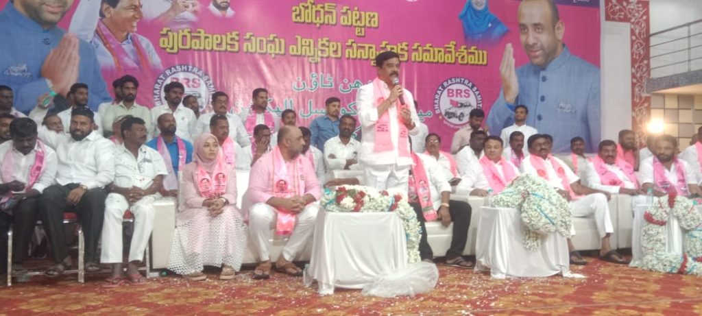 పయనించే సూర్యుడు న్యూస్ జనవరి 20 బోధన్ : మున్సిపల్ ఎన్నికలు ముచ్చటగా మూడోసారి చైర్మన్ పీఠాన్ని కైవసం చేసుకోవాలని మాజీ మంత్రి బాల్కొండ ఎమ్మెల్యే వేముల ప్రశాంత్ రెడ్డి, మాజీ ఎమ్మెల్యే లు అన్నారు. బోధన్ పట్టణంలోని సోమవారం అప్నా గార్డెన్స్లో, పురపాలక ఎన్నికల సన్నాహక కార్యక్రమం సమావేశానికి ముఖ్యఅతిథిగా విచ్చేసిన మాజీ మంత్రి బాల్కొండ ఎమ్మెల్యే వేముల ప్రశాంత్ రెడ్డి మాజీ ఎమ్మెల్యేలు జీవన్ రెడ్డి బీగాల గణేష్ గుప్తా విజి గౌడ్ ఈ కార్యక్రమంలో పాల్గొన్నారు వారు మాట్లాడుతూ రానున్న మున్సిపల్ ఎన్నికలలో బిఆర్ఎస్ కౌన్సిలర్లను గెలిపించుకోవాలని తద్వారా చైర్మన్ పదవినీ కైవసం చేసుకోవాలనీ కార్యకర్తలకు పిలుపునిచ్చారు కాంగ్రెస్ పార్టీ అనేక మోసపూరిత హామీలిచ్చి అధికారంలోకి వచ్చి న అనంతరం హామీల అమలు ఉసే మర్చిందని ఆగ్రహం వ్యక్తం చేశారు. మోసపూరిత హామీలపై ప్రజలకు వివరించాలని వారు పిలుపునిచ్చారు. ఈ కార్యక్రమం లో బిఆర్ఎస్ నాయకులు కార్యకర్తలు తదితరులు పాల్గొన్నారు