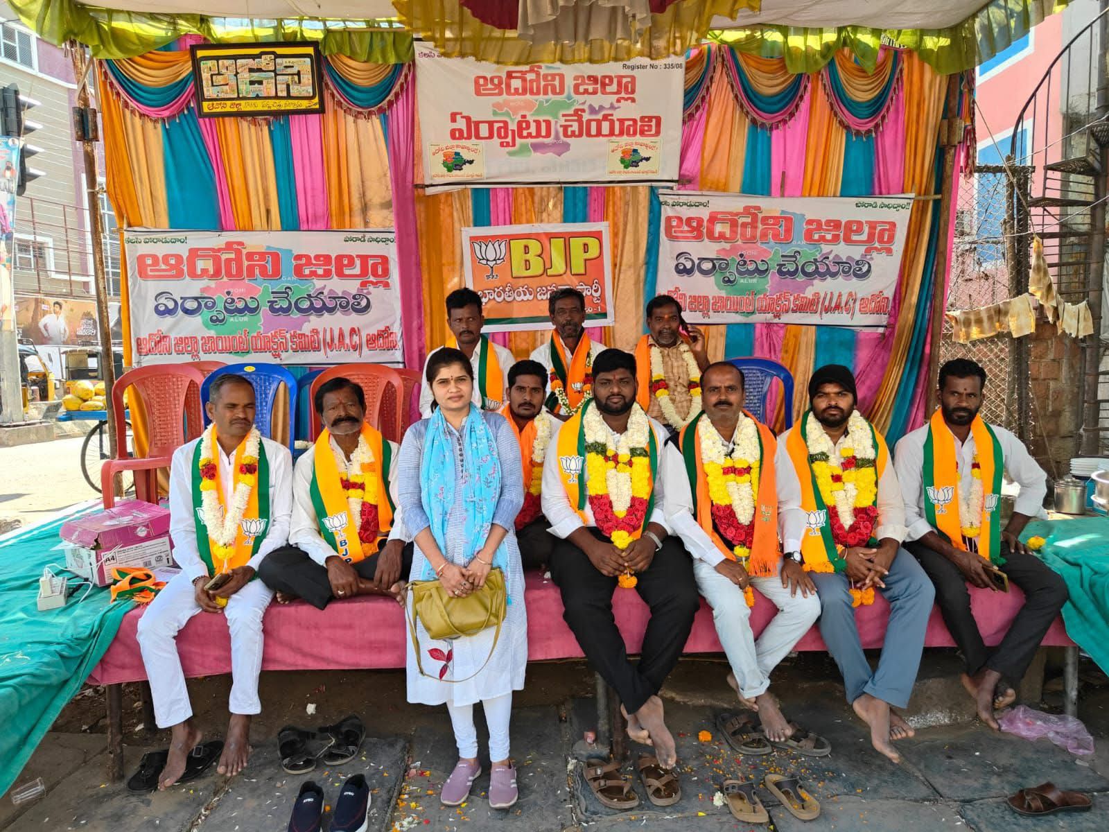 పయనించే సూర్యుడు జనవరి 20 ఆదోని నియోజకవర్గం క్రైమ్ రిపోర్టర్ కృష్ణ. ఆదోనిని జిల్లాగా ప్రకటించాలని డిమాండ్ చేస్తూ కొనసాగుతున్న ఉద్యమం 64వ రోజుకు చేరుకుంది. ఈ సందర్భంగా ఆదోని పట్టణంలో నిర్వహించిన నిరసన కార్యక్రమంలో ఆదోని రూరల్ మండల బీజేపీ నాయకులు ఉషారాజ్ దీక్షలో కూర్చొని ఉద్యమానికి మద్దతు తెలిపారు. ఉషారాజ్ మాట్లాడుతూ.. ఆదోని చారిత్రక, భౌగోళిక, జనాభా పరంగా జిల్లా అర్హతలు కలిగి ఉన్నప్పటికీ ప్రభుత్వాలు నిర్లక్ష్యం చేస్తున్నాయని విమర్శించారు. ఆదోనిని జిల్లాగా ప్రకటించడం ప్రజల న్యాయమైన డిమాండ్ అని పేర్కొన్నారు. ఆదోని జిల్లా ఏర్పాటు జరిగే వరకు పోరాటం ఆగదని, పార్టీలకతీతంగా ప్రజలంతా ఉద్యమానికి మద్దతు ఇవ్వాలని పిలుపునిచ్చారు. ప్రభుత్వం వెంటనే స్పందించి ఆదోనిని జిల్లాగా ప్రకటించాలని ఆయన డిమాండ్ చేశారు. ఈ కార్యక్రమం నిరాహార దీక్షలో బి.జె.పి ఆదోని మండల అధ్యక్షులు బి.ఉషా రాజు కె. కోసిగయ్య – జి.కె. అంజనేయులు, బి. రామకృష్ణ (న్యాయవాది) ఇస్వీ నాగప్ప (ఉపాధ్యక్షులు) నవీన్ సింగ్ – (కిసాన్ మోర్చా జిల్లా ఉపాధ్యక్షులు),కరవ రవి కుమార్,రాజ బాబు, మహేంద్ర, శ్రీనివాసులు వినూత్న గుప్త (బిజెపి నాయకురాలు) జి. గోపాల్, ఉసేని, జి. రామకృష్ణ, వెంకటేష్, నాగేష్, లక్ష్మన్న, రాజేష్,సదాపురం రమేష్, గోవిందు, తదితరులు పాల్గొన్నారు.