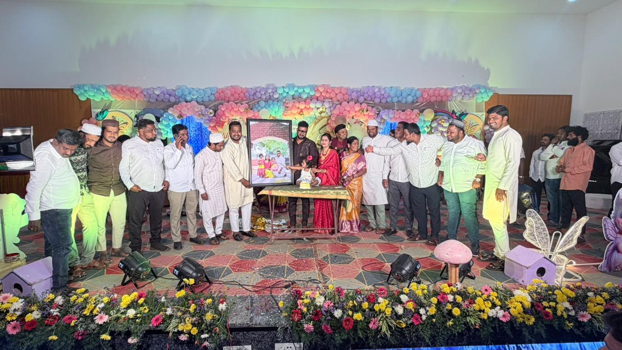 పయనించే సూర్యుడు మార్చ్ 7 (జహీరాబాద్ మండలం ప్రతినిధి స్వాతి.నర్సిములు ) జహీరాబాద్ మున్సిపల్ 6వ వార్డు కౌన్సిలర్ నరేష్ గౌడ్ కుమార్తె విహా గౌడ్ మొదటి పుట్టినరోజు వేడుకలు మొగుడంపల్లిలోని ఎల్లమ్మ గుడి దారిలో ఉన్న ఎస్.వి.కె గార్డెన్స్ లో జరిగాయి. ఈ వేడుకలో పలువురు రాజకీయ నాయకులు పాల్గొన్నారు. వారితో పాటు జహీరాబాద్ పట్టణ పోలీస్ వారు కూడా ఈ కార్యక్రమంలో పాలుపంచుకున్నారు. విహా గౌడ్ మొదటి పుట్టినరోజు సందర్భంగా అక్కడికి వచ్చిన వారంతా పాపను కలిసి దీవించారు. నరేష్ గౌడ్ మరియు వారి కుటుంబ సభ్యులు వచ్చిన వారందరినీ ఆహ్వానించారు.