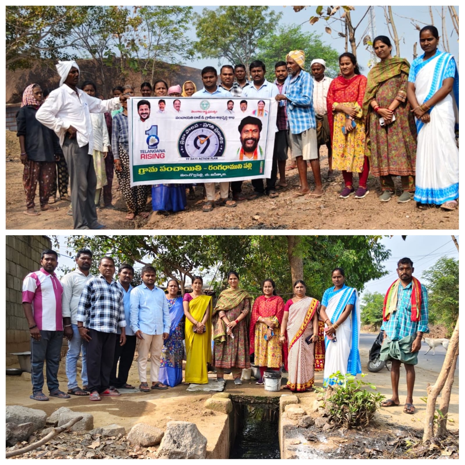 పయనించే సూర్యుడు 11-3-2026 గొల్లపల్లి మండల రిపోర్టర్ (ఆవుల చందు ) జగిత్యాల జిల్లా రాష్ట్ర ప్రభుత్వం ప్రతిష్టాత్మకంగా చేపడుతున్న 99 రోజుల “ప్రజా పాలన ప్రగతి ప్రణాళిక”ను జగిత్యాల జిల్లాలో గొల్లపల్లి మండలం రంగధాముని పల్లె గ్రామంలో.ఈనెల 6వ తేదీ నుంచి జూన్ 12వ తేదీ వరకు. అమలు చేయగా. మంగళవారం రోజున. రంగధామునిపల్లి గ్రామంలో ఉన్న డ్రైనేజీ, మురుగు కాలువలలో, పేరుకుపోయిన మట్టి, చెత్త, ప్లాస్టిక్ వల్ల నీటి ప్రవాహానికి అడ్డంకి కలగడం. దీనివల్ల కాలువలు పూడిక తీసి దోమలను, నివారించడానికి బ్లీచింగ్ పౌడర్ వేయడం జరిగింది. రోడ్డుకు ఇరువైపులా ఉన్న. పిచ్చి మొక్కలను, చెత్తను,ట్రాక్టర్, తో తీసివేయడం జరిగింది. ఈ కార్యక్రమంలో గ్రామ సర్పంచ్ జెల్ల అఖిల అనిల్ కుమార్, ఉప సర్పంచ్ ఎనుగందుల శ్రీనివాస్, వార్డు సభ్యులు, పంచాయతీ సెక్రెటరీ స్రవంతి రాథోడ్, ప్రైమరీ స్కూల్ హెచ్ఎం భాగ్యలక్ష్మి, అంగన్వాడీ టీచర్ రమాదేవి, రాజేశ్వరి, ఆశ రమాదేవి, ఎస్ ఎస్ జి పద్మ, గ్రామస్తులు పాల్గొన్నారు..