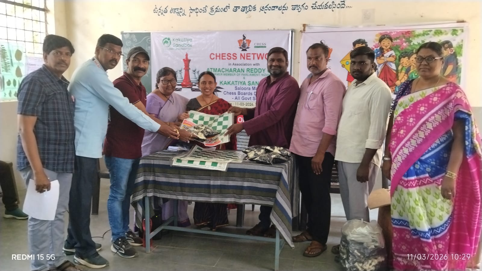 పయనించే సూర్యుడు 12-3-2026 గొల్లపల్లి మండల రిపోర్టర్ (ఆవుల చందు ) జగిత్యాల జిల్లా గొల్లపల్లి మండల కేంద్రంలోని మల్లన్న పేట గ్రామంలో గ్రేటర్ అట్లంట తెలంగాణ సొసైటీ అధ్యక్షులు గండ్ర వెంకటరమణారావు సహకారంతో గొల్లపల్లి మండల పరిధిలోని జిల్లా పరిషత్ మరియు మండల పరిషత్ 44 పాఠశాలకు 115 చెస్ బోర్డులు జిల్లా పరిషత్ ఉన్నత పాఠశాల మల్లన్న పేటలో పంపిణీ చేశారు ఈ కార్యక్రమానికి ముఖ్యఅతిథిగా హాజరైన చెస్ నెట్ వర్క్ ఫౌండర్ కొండాటి సుధీర్ మాట్లాడుతూ చేసి గేమ్ వల్ల విద్యార్థుల్లో మేధాశక్తి పెరుగుతుందని అదేవిధంగా ఆలోచనశక్తి సమస్య పరిష్కారం నైపుణ్యాలు పెరుగుతాయని వారన్నారు ఈ కార్యక్రమంలో పి ఆర్ టి యు టి ఎస్ జగిత్యాల జిల్లా శాఖ అధ్యక్ష ప్రధాన కార్యదర్శులు బోయిని పెల్లి ఆనందరావు యాల్ల అమర్నాథ్ రెడ్డి పాఠశాల ప్రధానోపాధ్యాయులు వుటూరి మహేష్ పి ఆర్ టి యు టి ఎస్ జిల్లా అసోసియేట్ అధ్యక్షులు వేణుగోపాలరావు కమిటీ సభ్యులు సురేష్ పాఠశాల ప్రధానోపాధ్యాయులు ఉపాధ్యాయులు పాల్గొన్నారు.