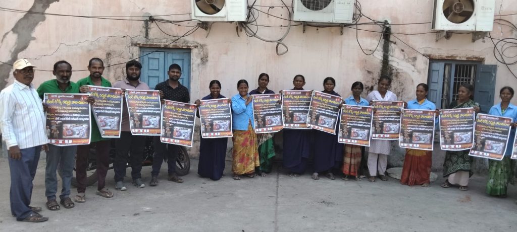 పయనించే సూర్యుడు న్యూస్: పెద్దపల్లి,సెంటినరీ కాలనీ -12 ఆర్జీ 3 ఏరియా సివిల్ డిపార్ట్మెంట్ కమ్యూనిటీ హాల్ హౌస్ కీపింగ్ గెస్ట్ హౌస్ కార్మికుల సెక్షన్ లో సింగరేణి కాలరీస్ కాంట్రాక్ట్ వర్కర్స్ యూనియన్ (ఐ ఎఫ్ టీ యు) రాష్ట్ర ప్రధాన కార్యదర్శి ఏ వెంకన్న సమావేశాలు నిర్వహించి ధర్నా పోస్టర్లను ఆవిష్కరించారు. ఈ సందర్భంగా వారు మాట్లాడుతూ.. లేబర్ కోడ్స్ రద్దుకై మార్చి 16 న పెద్దపల్లి జిల్లా కలెక్టర్ ఆఫీస్ వద్ద జరిగే ధర్నా మార్చి 23 హైదరాబాద్ ఆర్ ఎల్ సి ఆఫీసు వద్ద జరుగు మహా ధర్నా జయప్రదం చేయాలని అన్నారు. ఏప్రిల్ ఒకటి నుంచి నాలుగు లేబర్ కోడుల బిజెపి ప్రభుత్వం చేయబోతుందని మోదీ ప్రభుత్వం తెచ్చిన ఈ ప్రమాదకర నాలుగు లేబర్ కోడుల రద్దుకై నిరంతర పోరాటానికి సిద్ధం కావాలని ఐ ఎఫ్ టీ యు రాష్ట్ర పిలుపు లో భాగంగా పెద్దపల్లి జిల్లా కలెక్టర్ కార్యాలయం వద్ద మార్చి 16న జరిగే మహాధర్నా ను అధిక సంఖ్యలో కార్మికులు పాల్గొని జయప్రదం చేయాలన్నారు. ఈ కార్యక్రమంలో ఆర్ జీ 3.డివిజన్ నాయకులు ఎం లక్ష్మి, ఎస్ ఓదమ్మ ,ఆర్ రాధ, కే లక్ష్మి ,సదానందం, రమేష్, వెంకటేష్ ,రవి, సత్తయ్య, లక్ష్మి, శ్రీనివాస్, వెంకటేష్ ,నగేష్, రాజలక్ష్మి,శాంతమ్మ ,పద్మ ,విజయ, సరోజన, కనగలక్ష్మి ,స్వప్న, రాజేశ్వరి,తదితరులు పాల్గొన్నారు.