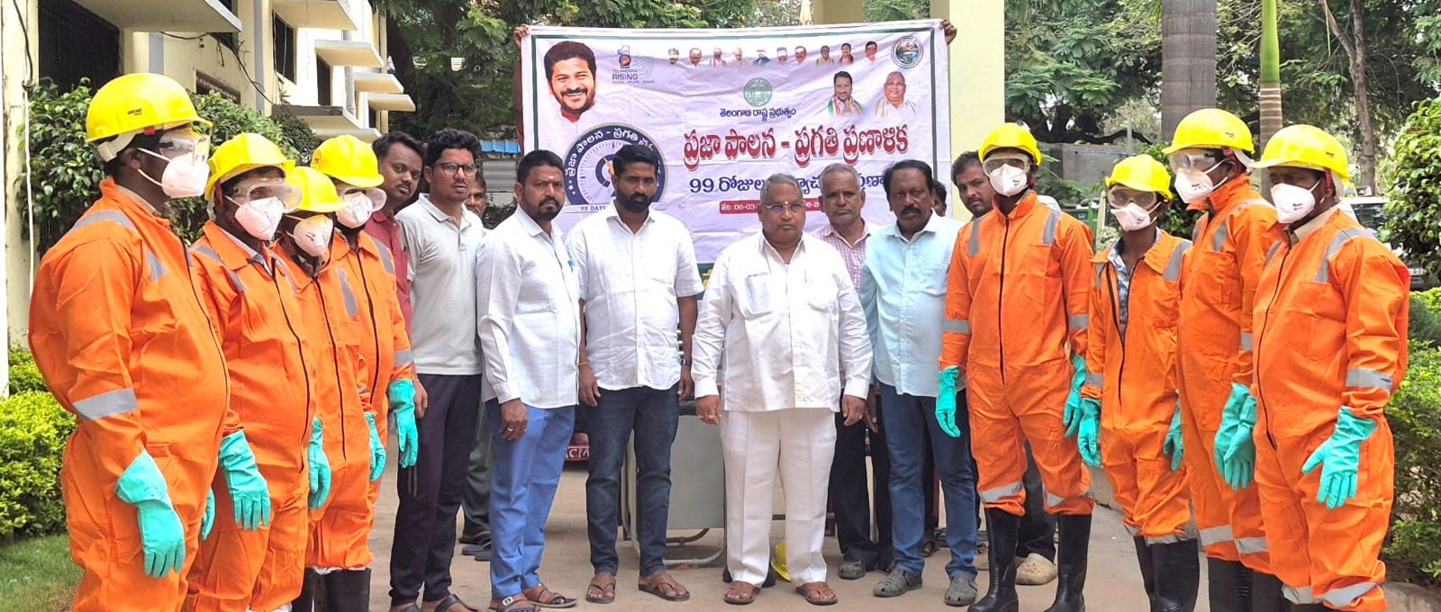 పయనించే సూర్యుడు న్యూస్ (సమీయొద్దీన్ )మెట్ పల్లి మార్చ్ 16 తెలంగాణ రాష్ట్ర ప్రభుత్వం ప్రతిష్టాత్మకంగా చేపట్టిన 99 రోజుల ప్రజా పాలన ప్రగతి ప్రణాళిక కార్యక్రమంలో భాగంగా ఆదివారం రోజు న సానిటేషన్ సిబ్బంది యొక్క ఆరోగ్యకరమైన సేఫ్టీ కిట్స్, సేఫ్టీ ఎక్యుమేన్స్, పిపిఇ కిట్స్ మున్సిపల్ చైర్మన్ మైలారపు లింబాద్రి చేతుల మీదుగా సానిటేషన్ సిబ్బందికి పంపిణీ చేయడం జరిగింది కార్యక్రమాన్ని ఉద్దేశించి చైర్మన్ మాట్లాడుతూ సానిటేషన్ సఫాయి వర్కర్ ఆరోగ్యకరమైన సేఫ్టీ కిట్స్, పిపిఇ కిట్స్ ఇవ్వడం జరిగిందని తెలిపారు సానిటేషన్ సంబంధించి మౌలికారణ, రక్షణ చర్యలు, సిబ్బంది సంక్షేమం గురించి సానిటేషన్ సిబ్బంది డ్రైనేజ్ సమస్యలను ఏ విధంగా పరికరాలను వాడాలో వివరంగా తెలపడం జరిగిందని మున్సిపల్ అందిస్తున్న పరికరాలను భద్రపరుచుకోవాలని సూచించారు ఈ కార్యక్రమంలో వైస్ చైర్మన్ శ్రీ ఓంకారి నవీన్ సానిటరీ ఇన్స్పెక్టర్ రాజ్ కుమార్ ఎన్విరాన్మెంట్ ఇంజనీర్ విష్ణు ముజీబ్ నరేష్ నిజాం పారిశుద్ధ్య సిబ్బంది పాల్గొన్నారు