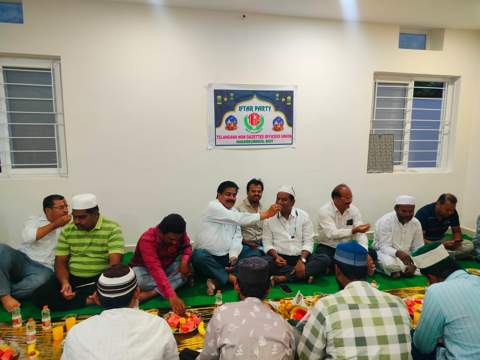 పయనించే సూర్యుడు మార్చి 18 నాగర్కర్నూల్ జిల్లా బిజినపల్లి రిపోర్టర్ కే శ్రావణ్ కుమార్ పవిత్ర రంజాన్ మాసం పురస్కరించుకొని జిల్లా కేంద్రంలోని తెలంగాణ నాన్ గెజిటెడ్ ఆఫీసర్స్ భవన్ లో మంగళవారం నాడు నాగర్ కర్నూల్ జిల్లా తెలంగాణ నాన్ గెజిటెడ్ ఆఫీసర్స్ అసోసియేషన్ ఆధ్వర్యంలో ముస్లిం సోదరులకు మరియు ముస్లిం ఉద్యోగస్తులకు ఇఫ్తార్ విందును ఇచ్చినట్లు టీఎన్జీవో జిల్లా అధ్యక్షులు భావాండ్ల వెంకటేష్, జిల్లా కార్యదర్శి షర్ఫుద్దీన్ తెలిపారు.ఈ సందర్భంగా వారు మాట్లాడుతూ రంజాన్ మాసంలో ముస్లిం ఉద్యోగ మిత్రులు సోదరులు పవిత్రంగా ఉంటారని,ఈ మాసంలో ఒకరోజు వారికి ఇఫ్తార్ ఇవ్వడం ఆనవాయితీగా వస్తుందని అన్నారు.ఈ కార్యక్రమంలో కోశాధికారి బాలరాజు,జిల్లా కమిటీ సభ్యులు కొట్ర బాలాజీ, చెన్నకేశవులు,పి.కళ్యాణ్ కృష్ణారావు,జ.కే.వెంకటేష్, శ్రావణ్,కరిముల్లా,రహీం అహ్మద్ వివిధ ప్రాంతాల నుండి వచ్చిన ముస్లిం ఉద్యోగ సోదరులు అధిక సంఖ్యలో పాల్గొన్నారు.