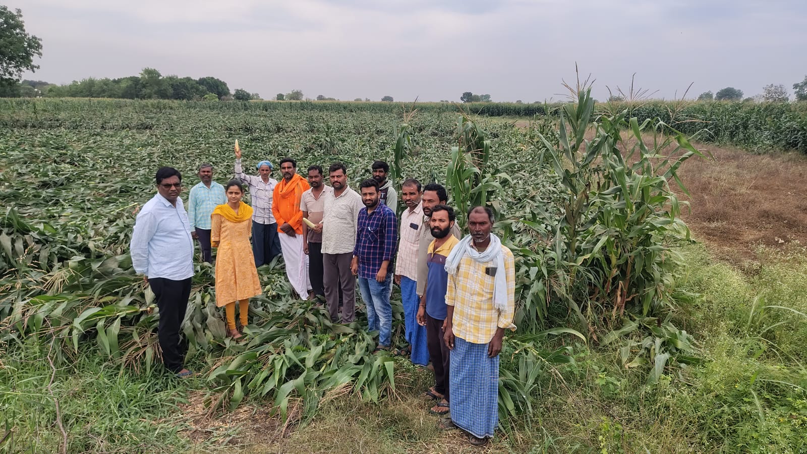 కుమ్మన్ పల్లిలో నేలనొరిగిన మొక్కజొన్న పంట పరిశీలన.