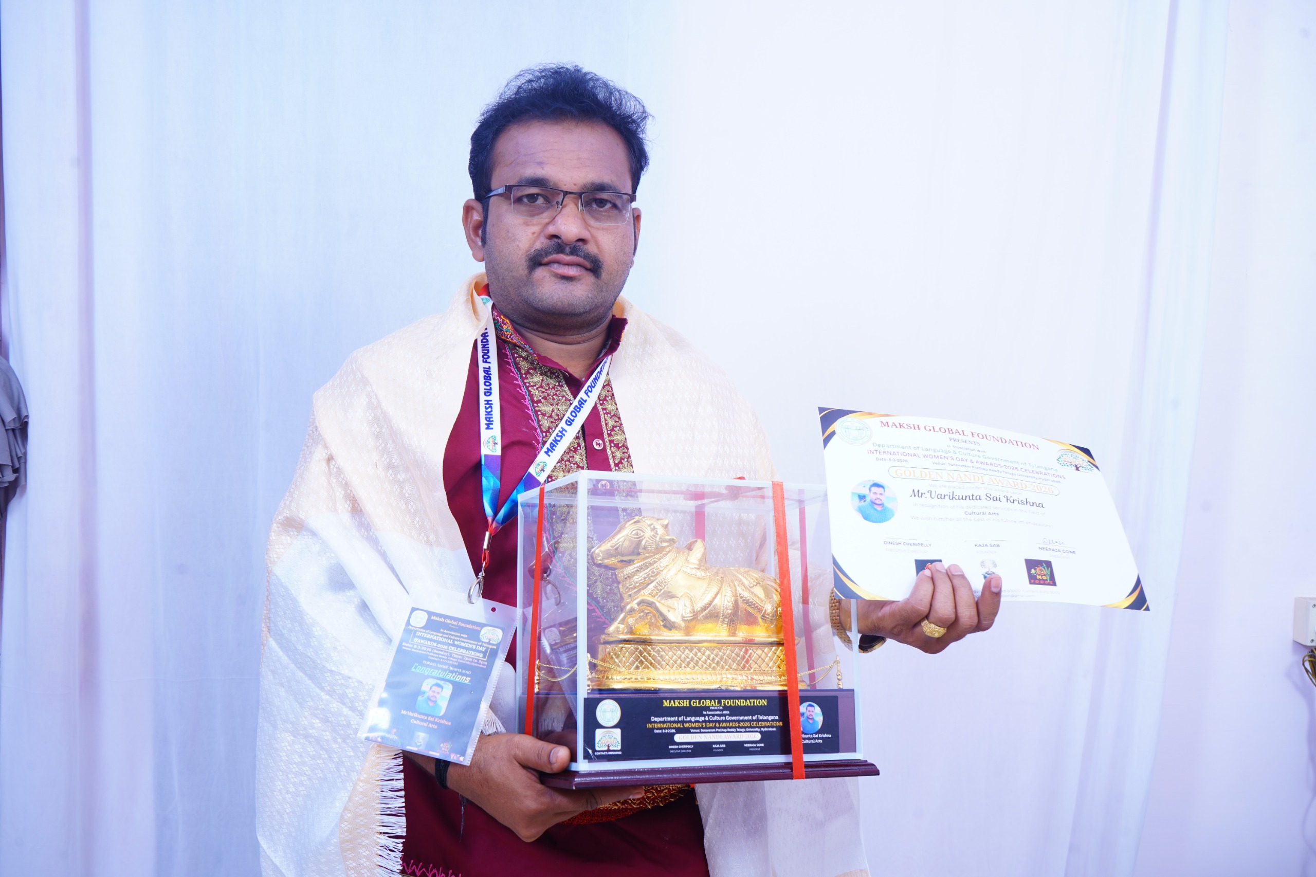 గవర్నమెంట్ ఆఫ్ లాంగ్వేజ్ & కల్చరలీ గవర్నమెంట్ ఆఫ్ తెలంగాణ స్వర్ణ నంది అవార్డు గ్రహీత జానపద చెక్కభజన గురువు వరికుంట్ల సాయికృష్ణ