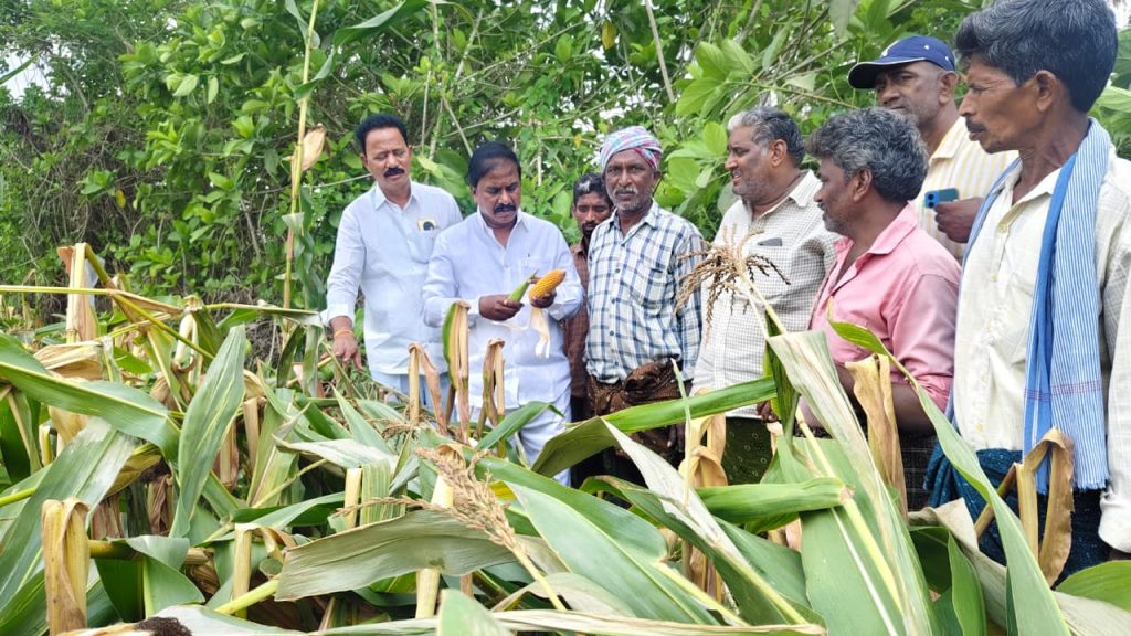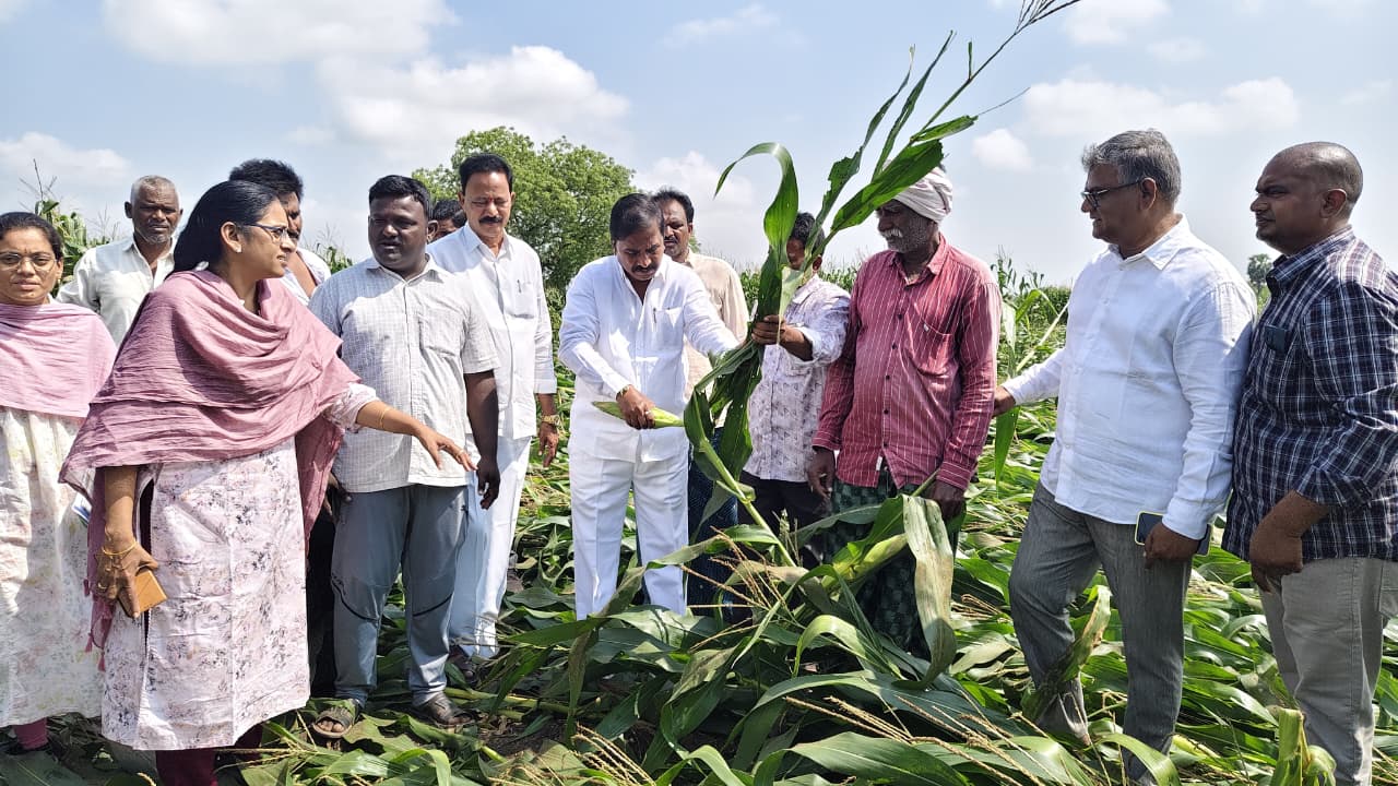 భారీ గాలులు,వర్షాలకు దెబ్బతిన్న పంట పొలాలను పరిశీలించిన ఎమ్మెల్యే శ్రీరాం రాజగోపాల్ (తాతయ్య