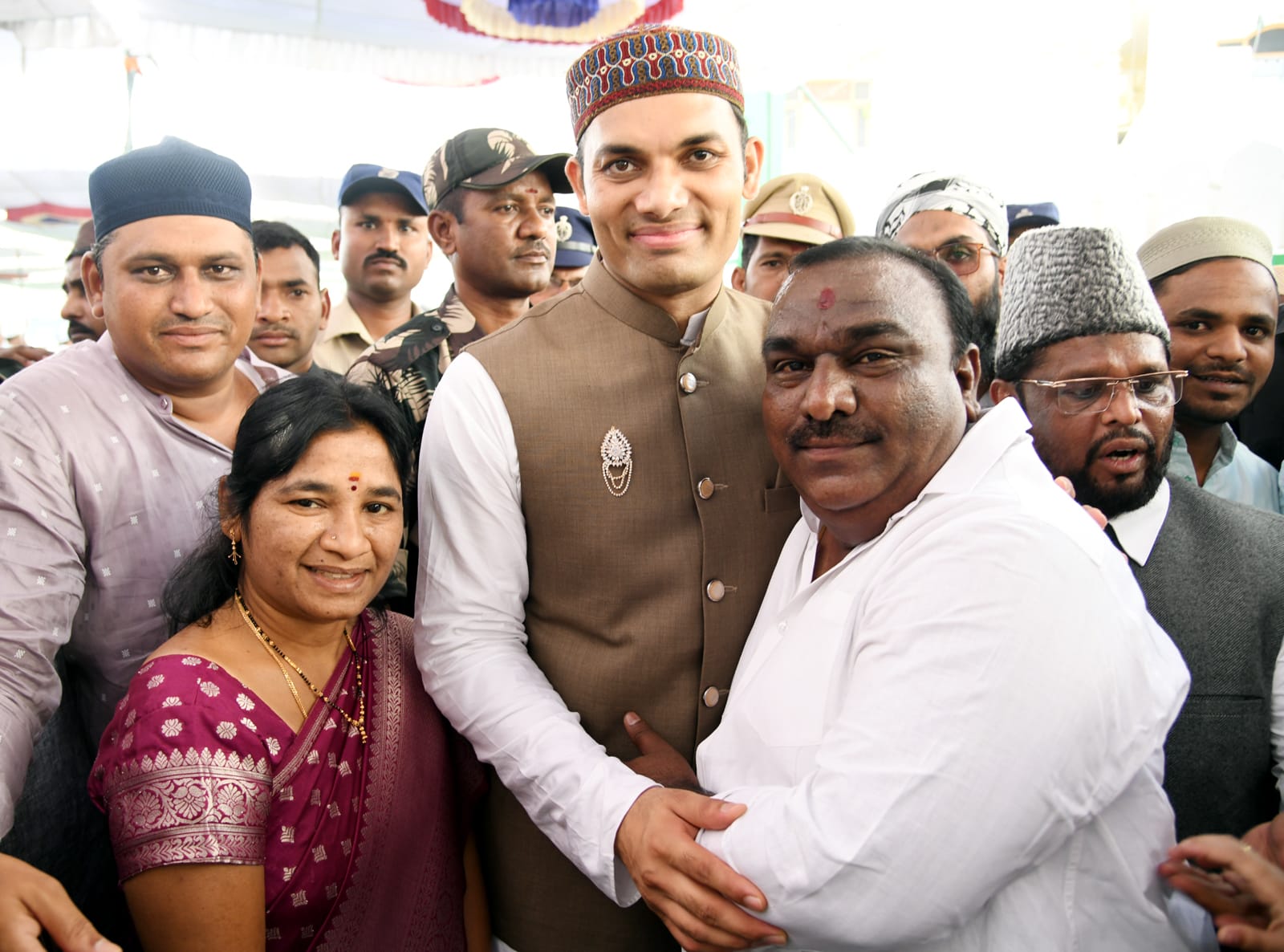 పయనించే సూర్యుడు మార్చి 22 కరీంనగర్ న్యూస్: కరీంనగర్ ప్రతినిధి దుర్గం మోహన్: పవిత్ర మాసమైన రంజాన్ పండుగ పురస్కరించుకొని 19వ డివిజన్ లో శనివారం నాడు సాలెహునగర్ ఈద్గా కు నమాజ్ కు ముస్లిం కుల పెద్దలతో విచ్చేసిన కరీంనగర్ జిల్లా పోలీస్ కమిషనర్ గౌస్ అలాం కు స్వాగతం పలికి పవిత్ర రంజాన్ పండుగ శుభాకాంక్షలు తెలియజేశారు 19వ డివిజన్ కార్పొరేటర్ సుధగోని.మాధవి-కృష్ణ గౌడ్ మాట్లాడుతూ ముస్లిం సోదర సోదరీమణులందరికీ పవిత్ర రంజాన్ సందర్భంగా ముస్లిం మత పెద్దలకు డివిజన్ ముస్లిం సోదరులకు రంజాన్ పండుగ శుభాకాంక్షలు తెలిపినారు అలాగే ప్రేమ కరుణ మరియు సహనానికి ప్రతికగా నిలిచే ఈ పండుగ మన అందరి జీవితాల్లో సరికొత్త వెలుగులు నింపాలని కోరుకుంటున్నాను మత సామరస్యం ఐక్యత ఎల్లప్పుడూ ఇలాగే ఉండాలని ఆకాంక్షిస్తున్నాను ఈ యొక్క కార్యక్రమంలో ముస్లిం కుల పెద్దలు ముస్లిం సోదరులు తదితరులు పాల్గొన్నారు