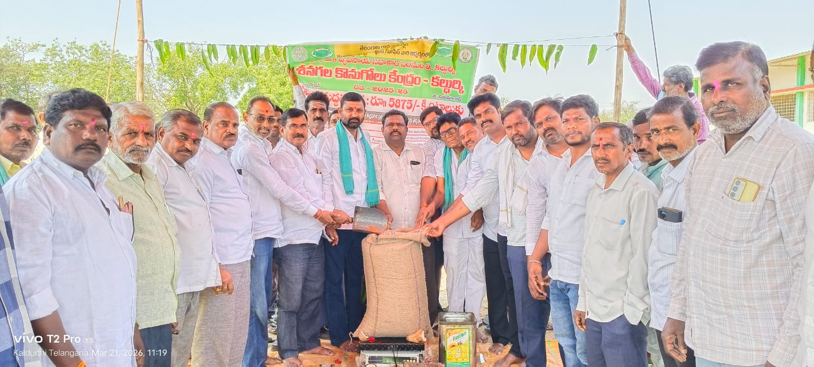 పయనించే సూర్యుడు న్యూస్ మార్చ్ 22 బోధన్ : ప్రభుత్వ శనగ కొనుగోలు కేంద్రాన్ని మార్క్ ఫెడ్,నా ఫెడ్ నేతృత్వంలో కల్దుర్కీ ప్రాథమిక వ్యవసాయ సహకార సంఘం ఆధ్వర్యంలో శనివారం శనగ కొనుగోలు కేంద్రాన్ని పిసిసి డెలిగేట్ గంగా శంకర్,బోధన్ ఏఎంసీ చైర్మన్ చీల శంకర్,వైస్ చైర్మన్ వసంత రెడ్డి,సొసైటీ అధికారులు ప్రారంభించారు.క్వింటాలుకు 5875 మద్దతు ధరను ప్రభుత్వం నిర్ణయించినట్లు సొసైటీ సీఈవో స్పష్టం చేశారు.ఎకరానికి 8 క్వింటాళ్ల శనగ పంటను కొనుగోలు చేయనున్నట్లు సీఈఓ వెల్లడించారు.సిబ్బందికి సహకరిస్తూ సమన్వయంతో రైతులు ప్రభుత్వ నిబంధనలకు అనుగుణంగా శనగ పంటను విక్రయించాలని పిసిసి డెలిగేట్ గంగా శంకర్ సూచించారు.ఎకరానికి 8 క్వింటాళ్ల పంట కొనుగోలు నిబంధనలు సడలించి రైతు పండించిన మొత్తం పంటను ప్రభుత్వ కొనుగోలు కేంద్రాలలో కొనుగోలు చేసే విధంగా చర్యలు తీసుకోవాలని రైతులు నాయకులు మరియు అధికారులను కోరారు.ప్రభుత్వ పెద్దలు మరియు అధికారుల దృష్టికి తీసుకెళ్తామని రైతులకు తెలిపారు.ఈ కార్యక్రమంలో కాంగ్రెస్ పార్టీ సీనియర్ నాయకులు ప్రకాష్ పటేల్,గణపతి రెడ్డి,గ్రామ సర్పంచ్ నరేందర్ రెడ్డి,గ్రామ పెద్దలు,రైతులు తదితరులు పాల్గొన్నారు.