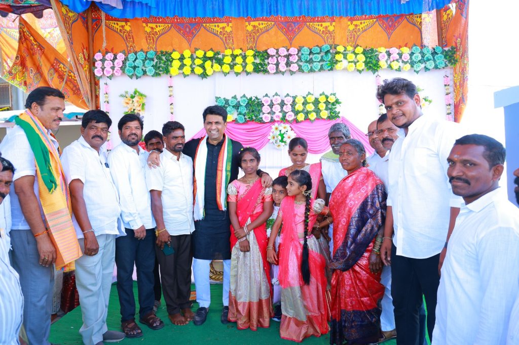 పయనించే సూర్యుడు మార్చి 22 నాగర్ కర్నూల్ జిల్లా బిజినపల్లి రిపోర్టర్ కే శ్రావణ్ కుమార్ బిజినపల్లి మండలం కారుకొండ, వట్టెం గ్రామాల్లో నూతనంగా నిర్మించిన ‘ఇందిరమ్మ ఇళ్ల’ను నాగర్ కర్నూల్ ఎమ్మెల్యే డా. కూచుకుళ్ల రాజేష్ రెడ్డి శనివారం ఘనంగా ప్రారంభించారు. లబ్ధిదారులతో కలిసి రిబ్బన్ కట్ చేసి గృహప్రవేశ కార్యక్రమాన్ని నిర్వహించారు. ఈ సందర్భంగా ఎమ్మెల్యే మాట్లాడుతూ పేదవాడి సొంతింటి కలను నెరవేర్చడమే ప్రభుత్వ ప్రధాన లక్ష్యమని అన్నారు. అర్హులైన ప్రతి పేదవాడికి సంక్షేమ పథకాలు అందేలా కృషి చేస్తామని హామీ ఇచ్చారు. గృహప్రవేశం అనంతరం లబ్ధిదారులతో ముచ్చటించిన ఆయన, ప్రభుత్వం అమలు చేస్తున్న సంక్షేమ ఫలాలు ప్రతి గడపకూ చేరేలా చర్యలు తీసుకుంటామని తెలిపారు. ఈ కార్యక్రమంలో మార్కెట్ కమిటీ చైర్మన్ రమణ రావు, బిజినపల్లి మండల అధ్యక్షులు మిద్దె రాములు సేవా దళ్ అధ్యక్షులు విద్య మల్లేష్ మాజీ సర్పంచ్ బాలరాజ్ కాంగ్రెస్ పార్టీ సీనియర్ నాయకులు కాసు గంటి శ్రీనివాస్ గౌడ్ ఇందిరమ్మ ఇండ్ల లబ్ధిదారులు స్థానిక ప్రజాప్రతినిధులు, పార్టీ నాయకులు, గ్రామ పెద్దలు మరియు గ్రామస్థులు పెద్ద సంఖ్యలో పాల్గొన్నారు. కొత్త ఇళ్లలోకి అడుగుపెట్టిన లబ్ధిదారులు ఎమ్మెల్యేకు, ప్రభుత్వానికి కృతజ్ఞతలు తెలియజేస్తూ ఆనందం వ్యక్తం చేశారు.