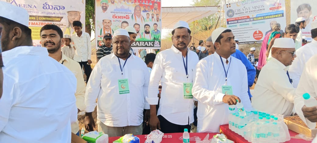 పయనించే సూర్యుడు న్యూస్ మెట్ పల్లి ) మార్చి 22 మెట్ పల్లి పట్టణంలోని వెంకట్రావు పేట లోని ఈద్గా పనులు ఈసారి రంజాన్ కు అదరహో అనిపించినాయి. ప్రతి సంవత్సరం జరుపుకునే రంజాన్ పండుగకు ప్రతి సంవత్సరం చాలి చాలని టెంట్లు మరియు తాగడానికి కనీస నీటి సదుపాయం కూడా ఉండేది కాదు కానీ ఈసారి కొత్త పాలకవర్గంలో కొత్త పనులు శ్రీకారం చుట్టాయి. 12వ వార్డు అయిన ముఖిమ్_ సుమయ్య తబస్సు మ్ ఆధ్వర్యంలో తాగడానికి బిస్లరీ నీరు, మరియు ప్రతి ముస్లిం సోదరులుకు మరియు సోదరీమణులు ఖర్జూర పండ్లను పంపిణీ చేయడం జరిగింది అలాగే ప్రతి సంవత్సరం నమాజ్ చేయడానికి వచ్చిన ముస్లిం సోదరులకు మరియు చిన్నపిల్లలకు చాలీచాలని టెంట్లు లో నమాజు చేసేవారు. కానీ ఈ సంవత్సరం కొత్త పాలకవర్గంలో ప్రతి ముస్లిం సోదరులు మరియు చిన్న పిల్లలు అలాగే పట్టణ ప్రజలు చాలా సంతోషం వ్యక్తం చేశారు ఈద్గా మొదలు నుండి చివరి వరకు చుట్టుప్రక్కల టెంట్ వెయ్యడం వలన ఎండలో కాకుండా ప్రతి ఒక్క ముస్లిం సోదరుడు నీడలో. నమాజ్ చేశారు అలాగే తాగడానికి మంచినీటి సరఫరా మరియు క్రింద కూర్చోవడానికి మ్యాట్ లు కూడా వేయించడం జరిగింది. ఇంత పవిత్రతకు సహకరించిన కాంగ్రెస్ పార్టీ కోరుట్ల నియోజకవర్గం ఇంచార్జ్ నర్సింగరావుకు, మరియు మున్సిపల్ చైర్ పర్సన్ మైలారపు లింబాద్రి కి, వైస్ చైర్ పర్సన్ ఓంకారి నవీన్ కు, మున్సిపల్ కమిషనర్ స్పందన మేడంకు, అలాగే ఎటువంటి అవాంఛన ఘటనలు జరగకుండా బందోబస్తు చేసిన పోలీస్ సిబ్బందికి మెట్టుపల్లి ముస్లిం సోదరులు కృతజ్ఞత భావం తెలిపారు. ముఖ్యంగా 12వ వార్డు కౌన్సిలర్ అయిన ముఖిమ్ – సుమయ్య తబ స్సుమ్ మరియు 12 వ వార్డు ప్రజలు సహకరించిన ప్రతి ఒక్కరికి కృతజ్ఞతలు తెలియజేశారు. ఈ కార్యక్రమంలో ముఖిమ్ మహమ్మద్ రైస్, లతీఫ్, మసూద్ మరియు పెద్ద సంఖ్యలో ముస్లిం యువకులు పాల్గొన్నారు.