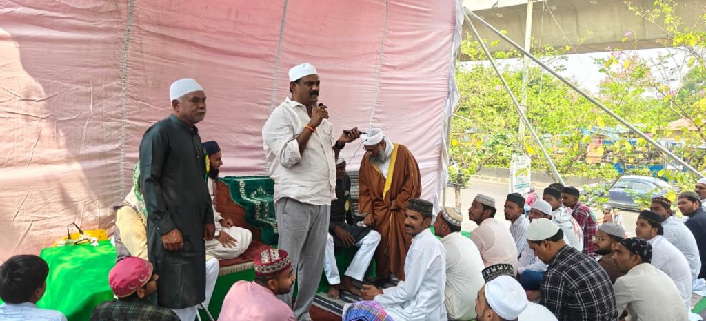 పయనించే సూర్యుడు, మార్చి 22 రంగారెడ్డిజిల్లాప్రతినిధి ఎస్ఎం కుమార్ శేరిలింగంపల్లి నియోజక వర్గంపరిధిలోని 123 డివిజన్లో ఉన్న హైదర్ నగర్ ఈద్గా శనివారం రోజు ఉదయం 9 గంటలకు వందలాదిమంది ముస్లిం సోదరులు తమ మత పెద్దల నియమ నిబంధనల తో ప్రార్థనలు చేశారు.ఈ పవిత్రమైన రంజాన్ (రమదాన్) ప్రార్థనలకు హైదర్ నగర్ తాజా మాజీనార్నే శ్రీనివాసరావు ముఖ్య అతిథిగా పాల్గొని ప్రార్థనలకు వచ్చిన వారితో అల్లాహ్ కు సుఖ శాంతులతో కుటుంబ సభ్యులందరినీ పెట్టాలని అందరితో కలిసి ప్రార్థనలో వేడుకోవడం సంభ్రం అనిపించింది. ప్రతి ఏడాది కంటే ఈసారి ముస్లిం సోదరులు పెద్ద ఎత్తున తరలి రావడం వారికి అన్ని విధాల జిహెచ్ఎంసి నుండి సదుపాయాలను కల్పించడం జరిగిందని తెలిపారు. శాంతియుతంగా రంజాన్ ప్రార్థనలను చేయాలని కెపిహెచ్బి ఇన్స్పె క్టర్ ఆధ్వర్యంలో పోలీసులు బందో బస్తును నిర్వహించారు. హైదర్ నగర్ డివిజన్ లోని ఈద్గా వద్ద ముస్లిం సోద రులతో కలసి నమాజ్ చేసిన తాజా మాజీ కార్పొరేటర్ నార్నె శ్రీనివాసరావు ఓపికను అక్కడి మత పెద్దలు గ్రామస్తు లు సంతోషాన్ని వ్యక్తం చేశారు.ఈ సంద ర్భంగా ఆయన మాట్లాడుతూ ముస్లిం సోదర సోదరీమణులందరికీ పవిత్ర రంజాన్ పండుగ శుభాకాంక్షలు తెలియజేసారు, అలానే, నెల రోజుల పాటు అత్యంత భక్తిశ్రద్ధలతో, క్రమశిక్ష ణతో ఉపవాస దీక్షలు ముగించుకుని,ఈ ద్ జరుపుకుంటున్న మీ అందరి జీవితా ల్లో ఆ అల్లాహ్ ఆశీస్సులు ఎల్లప్పుడూ ఉండాలని కోరుకుంటున్నట్లు చెప్పా రు.ఈ పండుగ మనందరి మధ్య సోదరభావాన్ని, శాంతిని, సామరస్యాన్ని మరింత పెంపొందించాలని ఆకాంక్షిస్తు న్నానని తెలిపారు.మీ ప్రార్థనలన్నీ ఫలిం చి, మీ కుటుంబాల్లో సుఖశాంతులు, అష్టైశ్వర్యాలు కలగాలని మనస్ఫూర్తిగా ప్రార్థిస్తున్నాన న్నారు.ప్రతి ఒక్కరికి రమదాన్ ఈద్ ముబారక్ అనినార్నె శ్రీనివాస రావు చెప్పడం జరిగింది.
