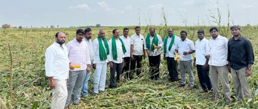పయనించే సూర్యుడు రిపోర్టర్ జగయ్యపేట నియోజకవర్గం ఇన్చార్జి చేని రాంబాబు _ఎన్టీఆర్ జిల్లా /జగ్గయ్యపేట నియోజకవర్గం మార్చి 24 _నందిగామ మండలంలో మాగల్లు రామిరెడ్డిపల్లి గ్రామాలలో ఇటీవలే కాలంలో అకాల వర్షం ఈదులుగాలతో మొక్కజొన్న పంట పూర్తిగా నేలరాళ్లటంతో రైతులతో కలిసి పంట పొలాలను పరిశీలించిన పరిశీలించిన జగ్గయ్యపేట నియోజకవర్గ వైఎస్ఆర్ సీపీ ఇన్-ఛార్జ్ తన్నీరు నాగేశ్వరరావు ఈ సందర్భంగా మాట్లాడుతూ అకాల వర్షం తోటి మొక్కజొన్న పంట పూర్తిగా నేలకు వారికి రైతులకు తీవ్ర నష్టాన్ని దాల్చింది. సంబంధిత వ్యవసాయ అధికారులు మంటలను పరిశీలించి నష్టపోయిన రైతులను గుర్తించి ప్రభుత్వానికి నివేదిక ఇచ్చి ఎకరా ప్రతి ఎకరంకు 50 వేల రూపాయలు నష్టపరిహారం అందించాలని డిమాండ్ చేశారు. ప్రభుత్వం తక్షణం మార్కెఫెడ్ ద్వారా మొక్కజొన్నను కనీస మద్దతు ధర రూ.2400/- కు కొనుగోలు చేయాలని రైతుల పక్షాన మేము డిమాండ్ చేస్తున్నాం. మొక్కజొన్న ప్రస్తుతం మార్కెట్లో కేవలం రూ.1500/- కు మాత్రమే దళారీలు రైతుల దగ్గర కొంటున్నారు. రైతులు ఇప్పటికీ చేతికి వచ్చిన మొక్కజొన్నను భద్రపరుచుకొనే స్థలం లేక కొందరు, అప్పుల బాధతో కొందరు దళారీలకు తెగనమ్ముకొంటున్నారు. మార్కెట్లో కనీస మద్దతు ధర రూ.2400/- లభించక పోవటం వలన రైతులకు క్వింటాకు సుమారుగా రూ.1000/- నష్టం వస్తుంది.కావున మొక్కజొన్న రైతులను వారి శ్రేయస్సును దృష్టిలో ఉంచుకొని వెంటనే మార్క్ ఫెడ్ కొనుగోలు కేంద్రాన్ని ప్రారంభించి రైతులను ఆదుకోవాలని మీ ద్వారా ప్రభుత్వాన్ని కోరారు ప్రభుత్వం వెంటనే రైతులకు నష్టపరిహారం అందించకపోతే ప్రజా రైతు ఉద్యమం చేస్తాం. ఈ కార్యక్రమంలో మండల పార్టీ అధ్యక్షులు రేఖ శ్రీనివాసరావు, జిల్లా పంచాయతీరాజ్ విభాగ అధ్యక్షులు కొమ్మినేని రవిశంకర్, జడ్పిటిసి సభ్యులు గాదెల వెంకటేశ్వర్లు(బాబు), రాష్ట్ర ఎస్సీ సెల్ ప్రధాన కార్యదర్శి కన్నమాల శామ్యూల్, రాష్ట్ర యువజన విభాగ కార్యదర్శి శివరాత్రి పృథ్వీరాజ్, జిల్లా రైతు విభాగ ప్రధాన కార్యదర్శి దేవినేని రామారావు, జిల్లా ఎస్సీ సెల్ కార్యదర్శి గుంటి అనిల్, నియోజకవర్గ విద్యార్థి, ఐటి విభాగాల అధ్యక్షులు కటారపు నవీన్, బండి రంజిత్, పట్టణ సోషల్ మీడియా యువజన విభాగ అధ్యక్షులు రామిని ఉపేందర్ రెడ్డి, సయ్యద్ సైదాలి, కొండూరు గ్రామ పార్టీ అధ్యక్షులు దేవినేని నాగేశ్వరరావు, తదితరులు పాల్గొన్నారు