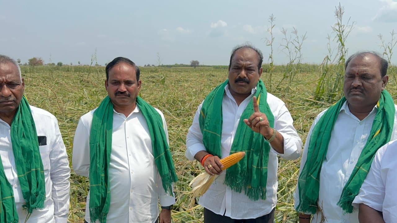 పయనించే సూర్యుడు రిపోర్టర్ జగయ్యపేట నియోజకవర్గం ఇన్చార్జి చేని రాంబాబు _ఎన్టీఆర్ జిల్లా /జగ్గయ్యపేట నియోజకవర్గం మార్చి 24 _నందిగామ మండలంలో మాగల్లు రామిరెడ్డిపల్లి గ్రామాలలో ఇటీవలే కాలంలో అకాల వర్షం ఈదులుగాలతో మొక్కజొన్న పంట పూర్తిగా నేలరాళ్లటంతో రైతులతో కలిసి పంట పొలాలను పరిశీలించిన పరిశీలించిన జగ్గయ్యపేట నియోజకవర్గ వైఎస్ఆర్ సీపీ ఇన్-ఛార్జ్ తన్నీరు నాగేశ్వరరావు ఈ సందర్భంగా మాట్లాడుతూ అకాల వర్షం తోటి మొక్కజొన్న పంట పూర్తిగా నేలకు వారికి రైతులకు తీవ్ర నష్టాన్ని దాల్చింది. సంబంధిత వ్యవసాయ అధికారులు మంటలను పరిశీలించి నష్టపోయిన రైతులను గుర్తించి ప్రభుత్వానికి నివేదిక ఇచ్చి ఎకరా ప్రతి ఎకరంకు 50 వేల రూపాయలు నష్టపరిహారం అందించాలని డిమాండ్ చేశారు. ప్రభుత్వం తక్షణం మార్కెఫెడ్ ద్వారా మొక్కజొన్నను కనీస మద్దతు ధర రూ.2400/- కు కొనుగోలు చేయాలని రైతుల పక్షాన మేము డిమాండ్ చేస్తున్నాం. మొక్కజొన్న ప్రస్తుతం మార్కెట్లో కేవలం రూ.1500/- కు మాత్రమే దళారీలు రైతుల దగ్గర కొంటున్నారు. రైతులు ఇప్పటికీ చేతికి వచ్చిన మొక్కజొన్నను భద్రపరుచుకొనే స్థలం లేక కొందరు, అప్పుల బాధతో కొందరు దళారీలకు తెగనమ్ముకొంటున్నారు. మార్కెట్లో కనీస మద్దతు ధర రూ.2400/- లభించక పోవటం వలన రైతులకు క్వింటాకు సుమారుగా రూ.1000/- నష్టం వస్తుంది.కావున మొక్కజొన్న రైతులను వారి శ్రేయస్సును దృష్టిలో ఉంచుకొని వెంటనే మార్క్ ఫెడ్ కొనుగోలు కేంద్రాన్ని ప్రారంభించి రైతులను ఆదుకోవాలని మీ ద్వారా ప్రభుత్వాన్ని కోరారు ప్రభుత్వం వెంటనే రైతులకు నష్టపరిహారం అందించకపోతే ప్రజా రైతు ఉద్యమం చేస్తాం. ఈ కార్యక్రమంలో మండల పార్టీ అధ్యక్షులు రేఖ శ్రీనివాసరావు, జిల్లా పంచాయతీరాజ్ విభాగ అధ్యక్షులు కొమ్మినేని రవిశంకర్, జడ్పిటిసి సభ్యులు గాదెల వెంకటేశ్వర్లు(బాబు), రాష్ట్ర ఎస్సీ సెల్ ప్రధాన కార్యదర్శి కన్నమాల శామ్యూల్, రాష్ట్ర యువజన విభాగ కార్యదర్శి శివరాత్రి పృథ్వీరాజ్, జిల్లా రైతు విభాగ ప్రధాన కార్యదర్శి దేవినేని రామారావు, జిల్లా ఎస్సీ సెల్ కార్యదర్శి గుంటి అనిల్, నియోజకవర్గ విద్యార్థి, ఐటి విభాగాల అధ్యక్షులు కటారపు నవీన్, బండి రంజిత్, పట్టణ సోషల్ మీడియా యువజన విభాగ అధ్యక్షులు రామిని ఉపేందర్ రెడ్డి, సయ్యద్ సైదాలి, కొండూరు గ్రామ పార్టీ అధ్యక్షులు దేవినేని నాగేశ్వరరావు, తదితరులు పాల్గొన్నారు
