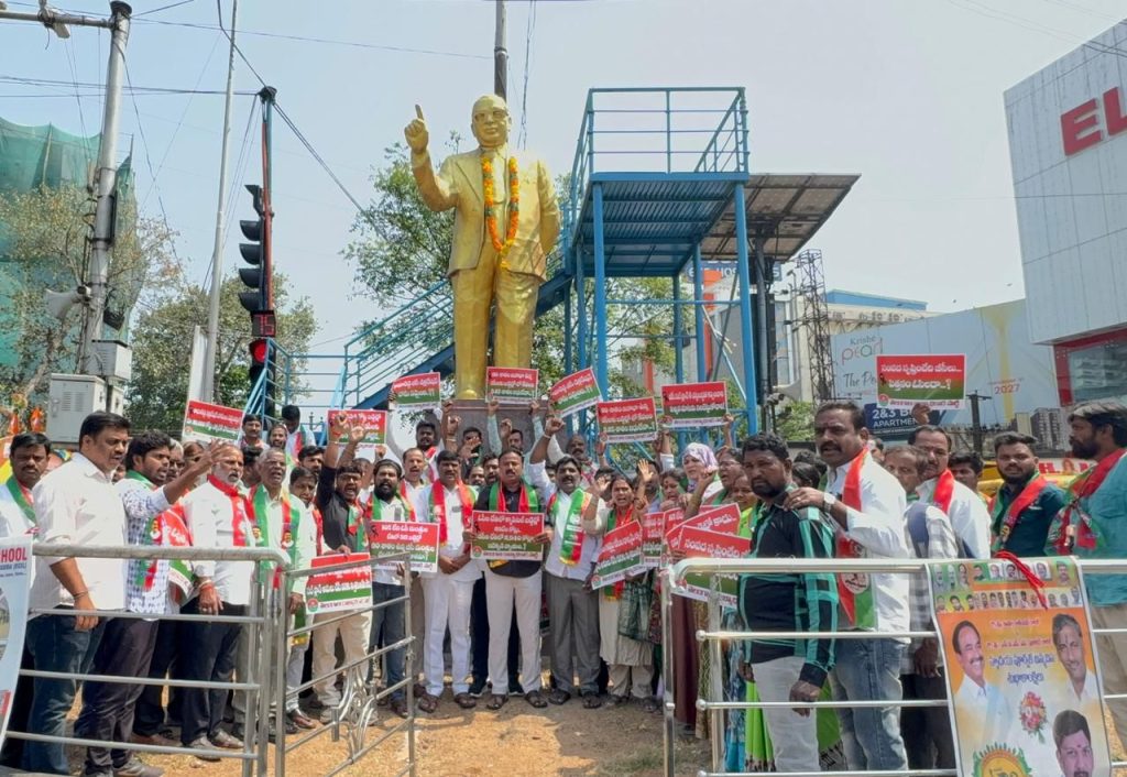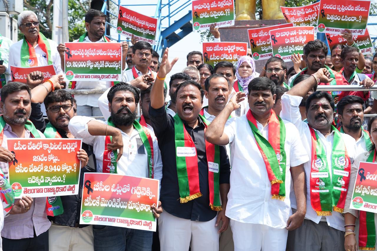 పయనించే సూర్యడు / మార్చ్ 24/ ఉప్పల్ ప్రతినిధి సింగం రాజు తెలంగాణ అసెంబ్లీలో ప్రవేశపెట్టిన 2026-27 బడ్జెట్ అంకెల గారడీ తప్ప సామాన్య ప్రజలకు, ముఖ్యంగా బీసీ సామాజిక వర్గాలకు పైసా ప్రయోజనం లేని ‘అప్పుల బడ్జెట్’ అని తెలంగాణ రాజ్యాధికార పార్టీ (టి ఆర్ పి) మేడ్చల్ జిల్లా నాయకులు ధ్వజమెత్తారు. పార్టీ రాష్ట్ర అధ్యక్షుడు తీన్మార్ మల్లన్న పిలుపు మేరకు సోమవారం కాప్రా సర్కిల్ పరిధిలోని ఈసీఐఎల్ చౌరస్తాలో జిల్లా పార్టీ అధ్యక్షులు పనగట్ల చక్రపాణి గౌడ్ ఆధ్వర్యంలో పార్టీ శ్రేణులు భారీ ధర్నా నిర్వహించాయి. ప్లకార్డులు చేతబూని, ప్రభుత్వ వ్యతిరేక నినాదాలతో చౌరస్తాను హోరెత్తించారు. బీసీలను వంచించిన కాంగ్రెస్ ప్రభుత్వం ఈ సందర్భంగా తెలంగాణ రాజ్యాధికార పార్టీ రాష్ట్ర వర్కింగ్ ప్రెసిడెంట్ సుదగాని హరి శంకర్ గౌడ్ మాట్లాడుతూ.. కాంగ్రెస్ ప్రభుత్వం అధికారంలోకి రాకముందు బీసీలకు ఇచ్చిన ‘కామారెడ్డి డిక్లరేషన్’ హామీలను బడ్జెట్‌లో పూర్తిగా విస్మరించిందని మండిపడ్డారు. ఎన్నికల సమయంలో బీసీ సంక్షేమానికి ఏడాదికి రూ. 20,000 కోట్లు కేటాయిస్తామని గొప్పలు చెప్పిన పాలకులు, నేడు బడ్జెట్‌లో ఆ ఊసే ఎత్తకపోవడం బీసీలను దారుణంగా వంచించడమే అని ఆయన ఆగ్రహం వ్యక్తం చేశారు. బీసీ సబ్ ప్లాన్‌కు చట్టబద్ధత కల్పిస్తామన్న హామీపై ప్రభుత్వం మౌనం వహించడం వెనుక అంతర్యమేమిటని ప్రశ్నించారు. 42 శాతం రిజర్వేషన్లే మా లక్ష్యం జిల్లా పార్టీ అధ్యక్షులు పనగట్ల చక్రపాణి గౌడ్ మాట్లాడుతూ, రాబోయే స్థానిక సంస్థల ఎన్నికల్లో బీసీలకు తక్షణమే 42 శాతం రిజర్వేషన్లు కల్పించాలని డిమాండ్ చేశారు. మహిళలకు నెలకు రూ. 2,500 ఇచ్చే మహాలక్ష్మి పథకానికి, నిరుద్యోగ భృతికి తగిన నిధులు కేటాయించకపోవడం మోసపూరితమన్నారు. ఈ బడ్జెట్ బీసీల ఆత్మగౌరవాన్ని దెబ్బతీసేలా ఉందని విమర్శించారు. ఉద్యమం ఉధృతం చేస్తాం ప్రభుత్వం ఇప్పటికైనా తన మొండి వైఖరిని వీడి, సవరించిన బడ్జెట్‌లో బీసీలకు న్యాయం చేయాలని జిల్లా యువజన విభాగం అధ్యక్షుడు సింగం అరుణ్ పటేల్ డిమాండ్ చేశారు. లేనిపక్షంలో మేడ్చల్ జిల్లా వ్యాప్తంగా తెలంగాణ రాజ్యాధికార పార్టీ ఆధ్వర్యంలో ఆందోళనలు ఉధృతం చేస్తామని హెచ్చరించారు. ఈ బడ్జెట్ కేవలం అప్పుల కుప్పగా మిగిలిపోయిందని ఎద్దేవా చేశారు. ఈ కార్యక్రమంలో తెలంగాణ రాజ్యాధికార పార్టీ రాష్ట్ర వర్కింగ్ ప్రెసిడెంట్ సుదగాని హరిశంకర్ గౌడ్, జిల్లా పార్టీ అధ్యక్షులు పనగట్ల చక్రపాణి గౌడ్, జిల్లా యువత అధ్యక్షులు సింగం అరుణ్ పటేల్, మహిళా అధ్యక్షురాలు నీరుడు షాలిని, బయ్యా వెంకటేష్, ప్రవీణ్ కుమార్, అంబాల శ్రీనివాస్, అభిరామ్, కమలాకర్, మహేష్ గౌడ్, మచ్చ పాండు గౌడ్, దుర్గ ప్రసాద్, సుల్తాన, మహేందర్ యాదవ్, జి కృష్ణ కుమార్, బాసీ