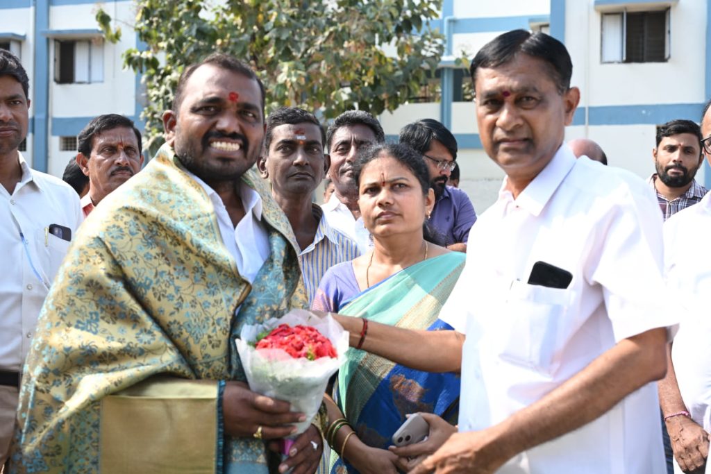 పయనించే సూర్యుడు మార్చి 25 కరీంనగర్ న్యూస్: కరీంనగర్ నగరపాలక సంస్థ అభివృద్ధి లో భాగంగా మంగళవారం రోజు నగరంలో పర్యటించారు. మొదటగా 44 వ డివిజన్ సప్తగిరి కాలనీ కస్తూరిభా గాంధీ ప్రభుత్వ పాఠశాలలో స్థానిక కార్పోరేటర్ చాడగొండ కవిత బుచ్చిరెడ్డి తో కలిసి 38 లక్షల నాభార్డ్ నిధులతో సైన్స్ ల్యాబ్ నిర్మాణంకు భూమీ పూజ చేసి పనులు ప్రారంభించారు. అనంతరం 49 వ డివిజన్ సంతోష్ నగర్ లో కార్పోరేటర్ ఎన్నం లక్ష్మీ ప్రకాష్ తో కలిసి సంతోషిమాత దేవాలయాన్ని సందర్శించారు. ఆలయంలో ప్రత్యేక పూజలు చేసి మొక్కులు చెల్లించుకున్నారు. అనంతరం సంతోష్ నగర్ కాలనీలో రోడ్డు, డ్రైనేజీ సమస్యలను తనిఖీ చేసి పరిశీలించి… సంతోష్ నగర్ రోడ్డు సమస్యను త్వరలోనే పరిష్కరిస్తామని హామీ ఇచ్చారు. అనంతరం భాగ్యనగర్ కాలనీలో 15 వ ఆర్థిక సంఘం 4 లక్షల నిధులతో మంచి నీటి సరఫరా పైపులైన్ అభివృద్ధి పనులకు భూమీ పూజ చేసి పనులు ప్రారంభం చేశారు. చేపట్టిన అభివృద్ధి పనులను వేగవంతంగా పూర్తి చేసేలా చర్యలు తీస్కోవాలని అధికారులు, కాంట్రాక్టర్లకు ఆదేశాలు జారీ చేశారు. ఈ సంధర్బంగా మేయర్ కొలగాని శ్రీనివాస్ మాట్లాడుతూ… ప్రజల నమ్మకాన్ని వమ్ము చేయకుండా మా పాలకవర్గం పని చేస్తుందన్నారు. శివారు ప్రాంతాల,విలీన గ్రామాల డివిజన్లు ప్రాధాన్యతగా అభివృద్ధి చేస్తామని తెలిపారు. 66 డివిజన్లలో ప్రజా సమస్యలను దశలవారీగా పరిష్కరించి… వసతి సౌకర్యాలు కల్పిస్తామని తెలిపారు. స్మార్ట్ సిటీ ప్రాజెక్టులో నగరంలోని ప్రభుత్వ పాఠశాలల్లో అధునీకరణ పనులు చెపట్టి విద్యార్థులకు వసతి సౌకర్యాలు కల్పించామని తెలిపారు. అధునిక విద్యా బోధన అందించే విధంగా పలు ప్రభుత్వ పాఠశాలలో స్మార్ట్ సిటీ ప్రాజెక్టులో స్మార్ట్ ఈ క్లాస్ రూంలు ఏర్పాటు చేశామని తెలిపారు. సప్తగిరి ప్రభుత్వ పాఠశాలలో కూడ విద్యార్థులకు వసతి సౌకర్యాలు కల్పించడంతో పాటు వాకింగ్ ట్రాక్, ఓపెన్ జిమ్ము ఏర్పాటు చేయడం జరిగిందని తెలిపారు. కస్తూరిభా గాంధీ పాఠశాల విద్యార్థుల కోసం నాభార్డుకు చెందిన 38 లక్షల నిధులతో సైన్స్ ల్యాబ్ భవన నిర్మాణం పనులకు భూమి పూజ చేసినట్లు తెలిపారు. అంతే కాకుండా 49 వ డివిజన్ భాగ్యనగర్ లో ప్రజలకు త్రాగు నీటి సౌకర్యం కల్పించేందుకు నూతనంగా మంచి నీటి పైపులైన్ అభివృద్ధి పనులను ప్రారంభం చేశామని తెలిపారు. మా పాలకవర్గం లో దశలవారీగా డివిజన్ల లో ప్రజల సమస్యలను పరిష్కరిస్తూ… నగరాన్ని మరింత అభివృద్ధి చేస్తామని తెలిపారు. ఈ కార్యక్రమాల్లో కార్పోరేటర్లు బండ రమణారెడ్డి, కర్రె పద్మ అనిల్, గాజ రమ శివరాం, డీఈ శ్రీనివాస్, ఏఈలు, స్థానిక ప్రజలు తదితరులు పాల్గొన్నారు.