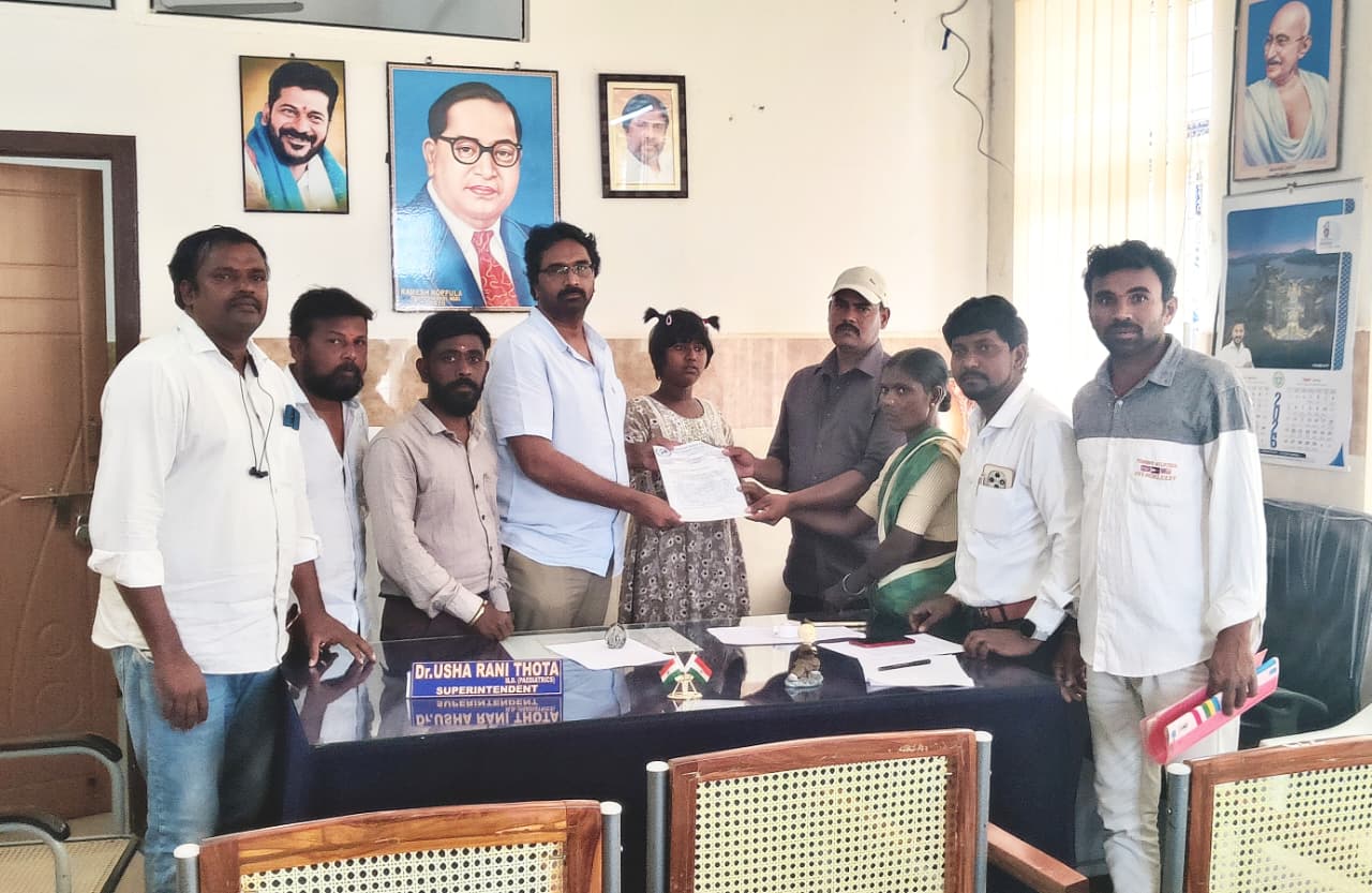 పయనించే సూర్యుడు మార్చి 25 నాగర్ కర్నూలు జిల్లా బిజినపల్లి రిపోర్టర్ కే శ్రావణ్ కుమార్ నాగర్ కర్నూల్ జిల్లా ప్రతినిధి: ఇంటర్నేషనల్ హ్యూమన్ రైట్స్ ఆర్గనైజేషన్ నాగర్ కర్నూల్ జిల్లా ఆధ్వర్యంలో జిల్లా మెడికల్ సూపరింటెండెంట్ గారికి వినతి పత్రం సమర్పించారు. జిల్లా అధ్యక్షులు మంగి ఆంజనేయులు, ఉపాధ్యక్షులు భాను ప్రకాష్, జనరల్ సెక్రటరీ ఆనంద్ సింగ్, కార్యదర్శులు బోనాసిరాజు, సుధాకర్ ఆచారి పాల్గొన్నారు. బిజినపల్లి మండలానికి చెందిన ఎం. శివమ్మ (తండ్రి స్వామి, ఎస్సీ మాదిగ) 01-01-2012న జన్మించినప్పటి నుండి మానసిక ఎదుగుదల లేకపోవడంతో, ఆమెకు మెడికల్ హెల్త్ (వికలాంగత) సర్టిఫికేట్ జారీ చేయాలని కోరారు. గత ఆరు సంవత్సరాలుగా సంబంధిత అధికారులు సర్టిఫికేట్ ఇవ్వకపోవడంతో ఈ విషయాన్ని మెడికల్ సూపరింటెండెంట్ దృష్టికి తీసుకెళ్లినట్లు తెలిపారు. అమ్మాయి భవిష్యత్తు దృష్ట్యా త్వరితగతిన హెల్త్ సర్టిఫికేట్ జారీ చేసి, ప్రభుత్వ పథకాల ద్వారా లభించే సహాయ సహకారాలు అందేలా చర్యలు తీసుకోవాలని వారు విజ్ఞప్తి చేశారు.