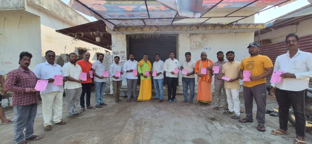పయనించే సూర్యుడు న్యూస్ రాయికల్ మండల్ మార్చి 25 మామిడిపెల్లి లక్ష్మణ్ జగిత్యాల జిల్లాలో ని రాయికల్ మండలము లోని మైతాపూర్ గ్రామంలో ఈ నెల 27వ తారీఖున శ్రీరామనవమి శుక్రవారం రోజున శ్రీ సితారా మూల వారి కల్యాణ ఆహ్వానం పత్రికలు గ్రామంలో ని ప్రతీ ఇంటి ఇంటికి వెళ్లి ఆహ్వానించిన హిందూ సమ్మేళన సమితి హనుమాన్ దీక్ష స్వాములు కలిసి రెండు వేలు భక్తులతోఈ కార్యక్రమం గ్రామంలో ని ఉత్తర వాడ రెడ్డి పంక్షన్ హాల్ యందు జరుపుతున్నట్లు తెలియజేశారు ఈ కార్యక్రమం మొదటగా హిందూ సమ్మేళన సమితి ఆధ్వర్యంలో ఆద్యాత్మిక మహోత్సవ కార్యక్రమంలో బాగ మూగ సామూహిక భజన సమీహిక హనుమాన్ చాలిషా పారాయణము సాంస్కృతిక కార్యక్రమాలు ఇ కార్యక్రమం అనంతరం శ్రీ సీతారాముల కళ్యాణ మహోత్సవం అంగరంగ వైభవంగా నిర్వహించేందుకు అన్ని ఏర్పాట్లు జరుగుతున్నాయని ఈ కార్యక్రమాల అనంతరం అందరికీ అన్నప్రాసాదము ఏర్పాటు చేశామని తెలిపారు ఈ కార్యక్రమానికి అందరూ పెద్ద ఎత్తున గ్రామస్తులు పాల్గొని విజయవంతం చేయాలని ఇంటి ఇంటికి చెప్పుకుంటూ గ్రామము లో పర్యటించారు ఈకార్యక్రమంలో క్యాసునూరి మఠము జగదీష్ జగదిశువర్ సమితి అధ్యక్షుడు బుస గంగా మల్లయ్య కార్యక్రమ నిర్వహణకుడు దొంగ జితెందర్ క్యాషియర్ బెతి రాజు నాగిరెడ్డి సంతోష్ అనుమల్ల సత్యనారాయణ దొంగ లింగారెడ్డి పురాణం భవానీ రాములు రామన్న సద్ది మహిపాల్ కాలాగిరి మధుకర్ దేశావెని శ్రీనివాస్ శివ నీతి గంగారెడ్డి ఆమరెదంరునేరెల విజయ్ గౌడ్ కొల కృష్ణ రెడ్డి బొమ్మన బాబు లక్ష్మణ్ తదితరులు పాల్గొన్నారు