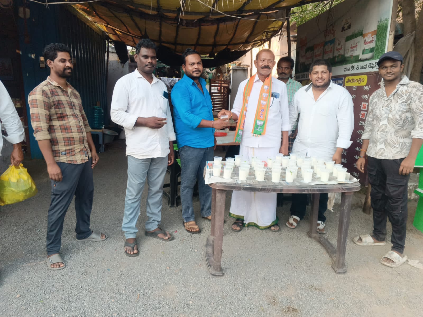 ప్రయాణికులకు మజ్జిగ పంపిణి బిజెపి నాయకులు