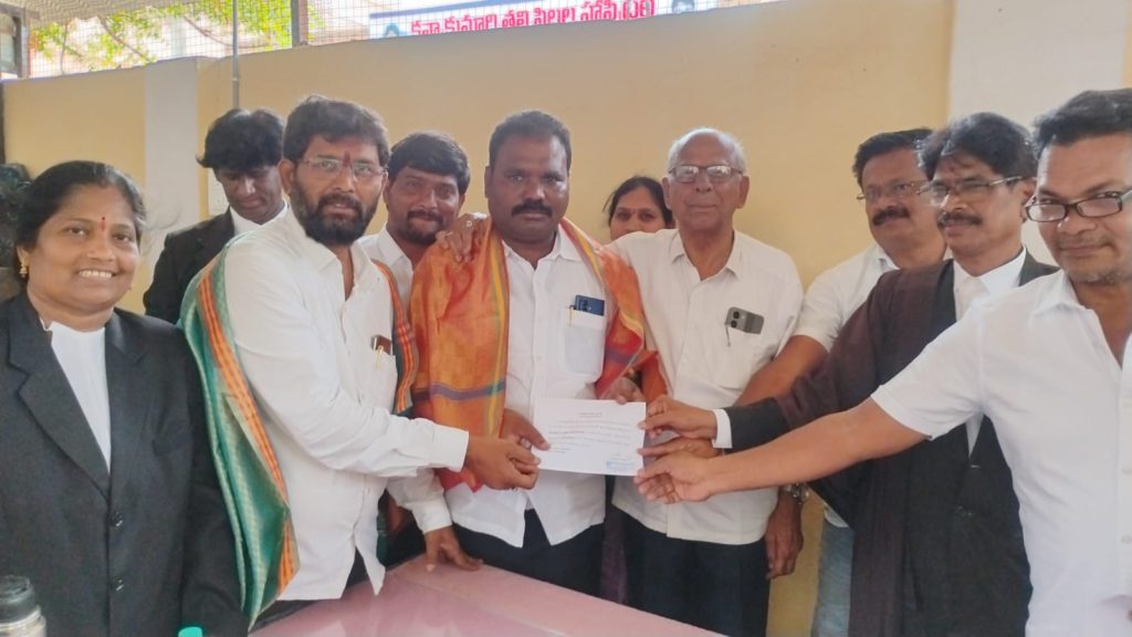 పయనించే సూర్యుడు, మార్చ్ 26, దేవరకొండ టౌన్ న్యూస్ రిపోర్టర్, వల్లపు నరేష్ నల్గొండ జిల్లా. దేవరకొండ బార్ అసోసియేషన్ అధ్యక్షులుగా సన్నాయిల ఉమామహేశ్వర్ ఏకగ్రీవంగా ఎన్నికైనట్లు ఎన్నికల అధికారి రియాజుద్దీన్ తెలిపారు, గత మూడు సంవత్సరాలుగా దేవరకొండ బార్ అసోసియేషన్ అధ్యక్షులుగా కొనసాగుతూ కక్షాదారులకు న్యాయ సంబంధమైన కేసులను వాదిస్తూ ప్రజల్లో మంచి గుర్తింపు పొందిన ఆయనను ఏకగ్రీవంగా ఎన్నుకున్నట్లు అసోసియేషన్ సభ్యులు తెలిపారు, అనంతరం నూతన కమిటీ ఎన్నుకోవడం జరిగినది అధ్యక్షులుగా సన్నాయిల ఉమామహేశ్వర్, ప్రధాన కార్యదర్శిగా వనం జగదీశ్వర్, కోశాధికారిగా ఈడం రవికుమార్,ఉపాధ్యక్షులుగా ఎల్కే దుర్గా, బి శ్రీనివాస్, సహాయ కార్యదర్శులుగా సిలువేరు పుష్పలత, ఎం యాదయ్య, కల్చరల్ కార్యదర్శిగా శంకర్, మరియు ఇతర సభ్యులను ఏకగ్రీవంగా ఎన్నుకోవడం జరిగిందని ఆయన తెలిపారు, ఎన్నికైన సభ్యులను సీనియర్ న్యాయవాదులు గాజుల ఆంజనేయులు, రోహిత్ రెడ్డి, ముస్తాక్ అహ్మద్, మరియు ఎలక్షన్ అధికారి రియాజుద్దీన్ తదితరులు పాల్గొని నూతన కమిటీకి శుభాకాంక్షలు తెలిపారు,