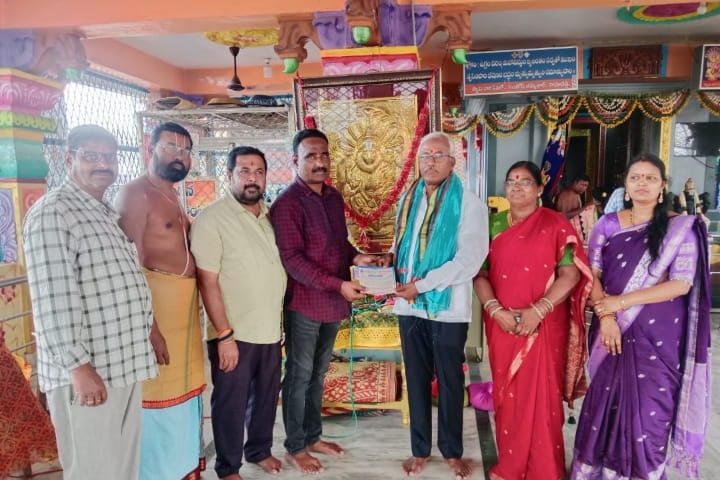 పయనించే సూర్యుడు మాచారెడ్డి రిపోర్టర్ ఓబుల్ రెడ్డి మార్చి 26 శ్రీ లక్ష్మీ నరసింహ స్వామి దేవస్థానం చుక్కాపూర్ వద్ద జరుగుచున్న అభివృద్ధి పనులను చూసి ఆలయం వద్ద నిర్మించుచున్న కాలక్షేప ఆశీర్వచన మండపము లోనికి పైడి మధుసూదన్ రెడ్డి గంగమణి కామారెడ్డి మరియు భీమిడి చక్రధర్ రెడ్డి లావణ్య హైదరాబాద్ గార్లు తమ వంతు సహాయంగా సుమారు Rs 71000/-(డెబ్బై ఒక వేయి రూపాయల) విలువ చేసే టైల్స్ ను విరాళముగా ఆలయ చైర్మన్ శనిగరం కమలాకర్ రెడ్డి గారికి అందజేశారు ఇట్టి కార్యక్రమంలో చైర్మన్ కమలాకర్ రెడ్డి ఈవో ప్రభు రాంచంద్రం జూనియర్ అసిస్టెంట్ సంతోష్ కుమార్ ఆలయ అర్చకులు సిబ్బంది పాల్గొన్నారు అనంతరం దాతలను ఘనంగా సన్మానించి స్వామి వారి చిత్రపటాన్ని అందజేశారు