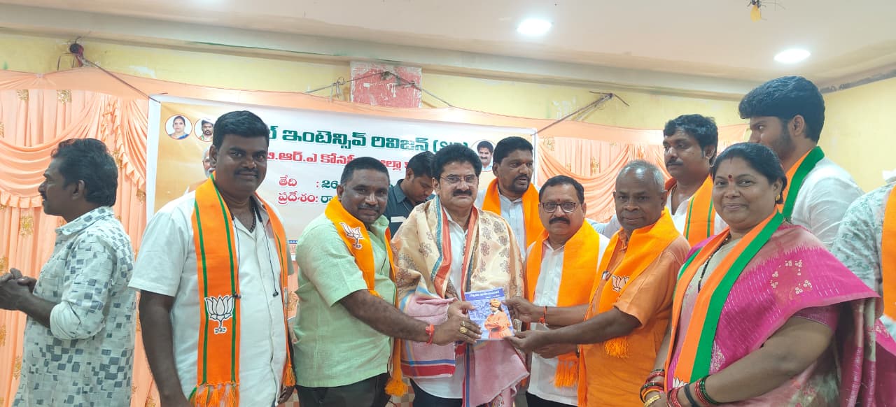 పయనించే సూర్యుడు మార్చి 27 ముమ్మిడివరం ప్రతినిధి డాక్టర్ బి.ఆర్ అంబేద్కర్ కోనసీమ జిల్లా రావులపాలెంలో బీజేపీ జిల్లా అధ్యక్షులు అడబాల సత్యనారాయణ ఆద్వర్యంలో స్పెషల్ ఇంటెన్సివ్ రివిజన్(ఎస్. ఐ. ర్ )పై జిల్లా నాయకులకు, మండల అధ్యక్షులకు గురువారం అవగాహన కార్యక్రమం నిర్వహించారు. ఈ కార్యక్రమంలో అనపర్తి ఎమ్మెల్యే, ఎస్. ఐ. ర్ రాష్ట్ర కన్వీనర్ నల్లమిల్లి రామకృష్ణారెడ్డి పాల్గొని మాట్లాడుతూ ఎస్. ఐ. ర్ గురించి వివరించారు. ఈ సందర్భంగా ఎమ్మెల్యే రామకృష్ణారెడ్డి కి మాజీ శాసనసభ్యులు మానేపల్లి అయ్యాజీవేమ ముమ్మిడివరం మార్కెట్ కమిటీ వైస్ చైర్మన్ గోలకోటి వెంకట రెడ్డి, బీజేపీ జిల్లా ఉపాధ్యక్షులు గనిశెట్టి వెంకటేశ్వరరావు, జిల్లా ట్రెజరర్ గ్రంథి నానాజీ, అయినవిల్లి మండల అధ్యకులు యనమదల వెంకటరమణ ఘనంగా సత్కరించి , వివేకానంద బుక్ ను బహూకరించారు.
