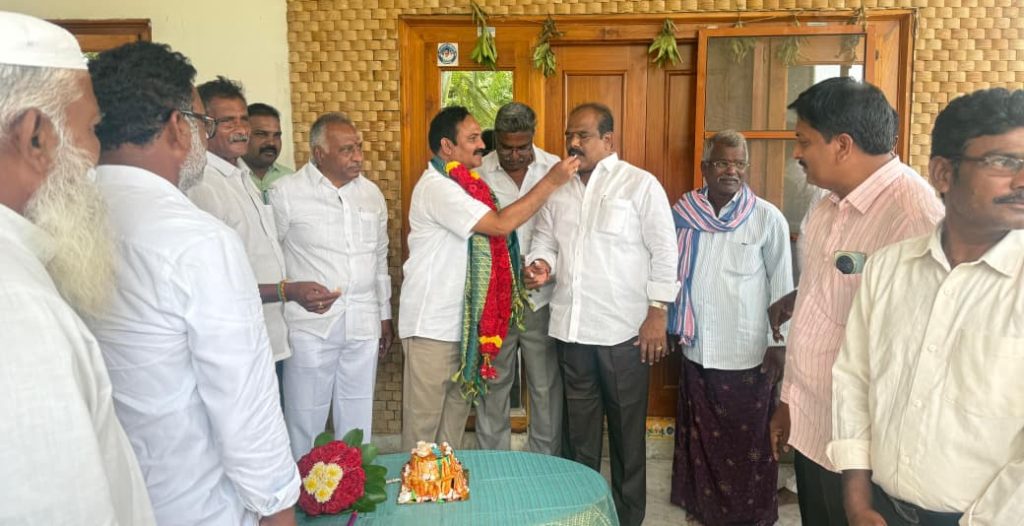పయనించే సూర్యుడు రిపోర్టర్ జగయ్యపేట నియోజకవర్గం ఇన్చార్జి చేని రాంబాబు ఎన్టీఆర్ జిల్లా జగ్గయ్యపేట నియోజకవర్గం, నందిగామ మండలం మాగల్లు గ్రామం నందు వైఎస్ఆర్ సిపి జిల్లా పంచాయతీరాజ్ విభాగ అధ్యక్షులు & మాజీ కే డి సి సి బ్యాంక్ డైరెక్టర్ కొమ్మినేని రవిశంకర్ పుట్టినరోజు సందర్భంగా వారిచే కేక్ కట్ చేసి, శాలువాతో సన్మానించి జన్మదిన శుభాకాంక్షలు తెలియజేసిన నియోజకవర్గ వైఎస్ఆర్ సీపీ ఇన్-ఛార్జ్ తన్నీరు నాగేశ్వరరావు ఈ కార్యక్రమంలో జడ్పీటీసీ సభ్యులు గాదెల వెంకటేశ్వరరావు (బాబు), మండల పార్టీ అధ్యక్షులు రేఖ శ్రీనివాసరావు, రాష్ట్ర ఎస్సీ సెల్ ప్రధాన కార్యదర్శి కన్నమాల శామ్యూల్, జిల్లా రైతు విభాగ ప్రధాన కార్యదర్శి దేవినేని రామారావు, మండల పంచాయతీరాజ్ విభాగ అధ్యక్షులు చెరుకూరి రమేష్, నాదెళ్ల శ్రీనివాసరావు, దేవినేని నాగేశ్వరరావు, జిల్లా ఎస్టీ సెల్ కార్యదర్శి కవాటి నాగేశ్వరరావు, జిల్లా ఎస్సీ సెల్ కార్యదర్శి గుంటి అనిల్, నియోజకవర్గ విద్యార్థి, సోషల్ మీడియా విభాగల అధ్యక్షులు కటారపు నవీన్, వీరమాచినేని నవీన్, మాగల్లు, రుద్రవరం, కొండూరు, రామిరెడ్డిపల్లి గ్రామ పార్టీ అధ్యక్షులు పరిమి వెంకటేశ్వర్లు, జిల్లేపల్లి వెంకటేశ్వర్లు, పోపూరి పూర్ణచందర్రావు-కిషోర్, తోట నరేష్, మండల ముస్లిం మైనారిటీ విభాగ అధ్యక్షులు షేక్ సుల్తాన్ భాష, ముప్పాళ్ళ మధు తదితరులు పాల్గొన్నారు.