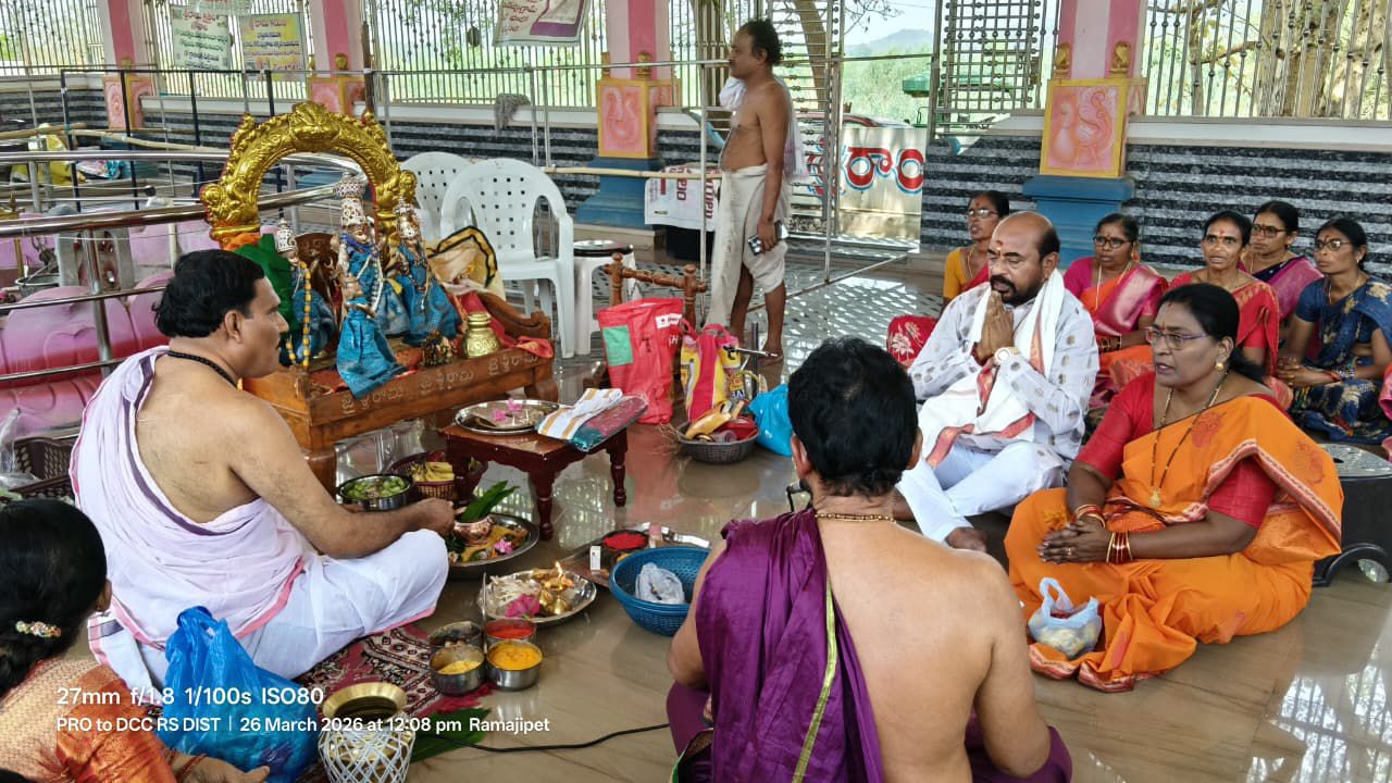 శ్రీరామనవమి సందర్భంగా రామోజీపేట రామాలయంలో స్వామివారికి పట్టు వస్త్రాలు సమర్పించిన డిసిసి అధ్యక్షులు సంగీతం శ్రీనివాస్ – విద్య దంపతులు